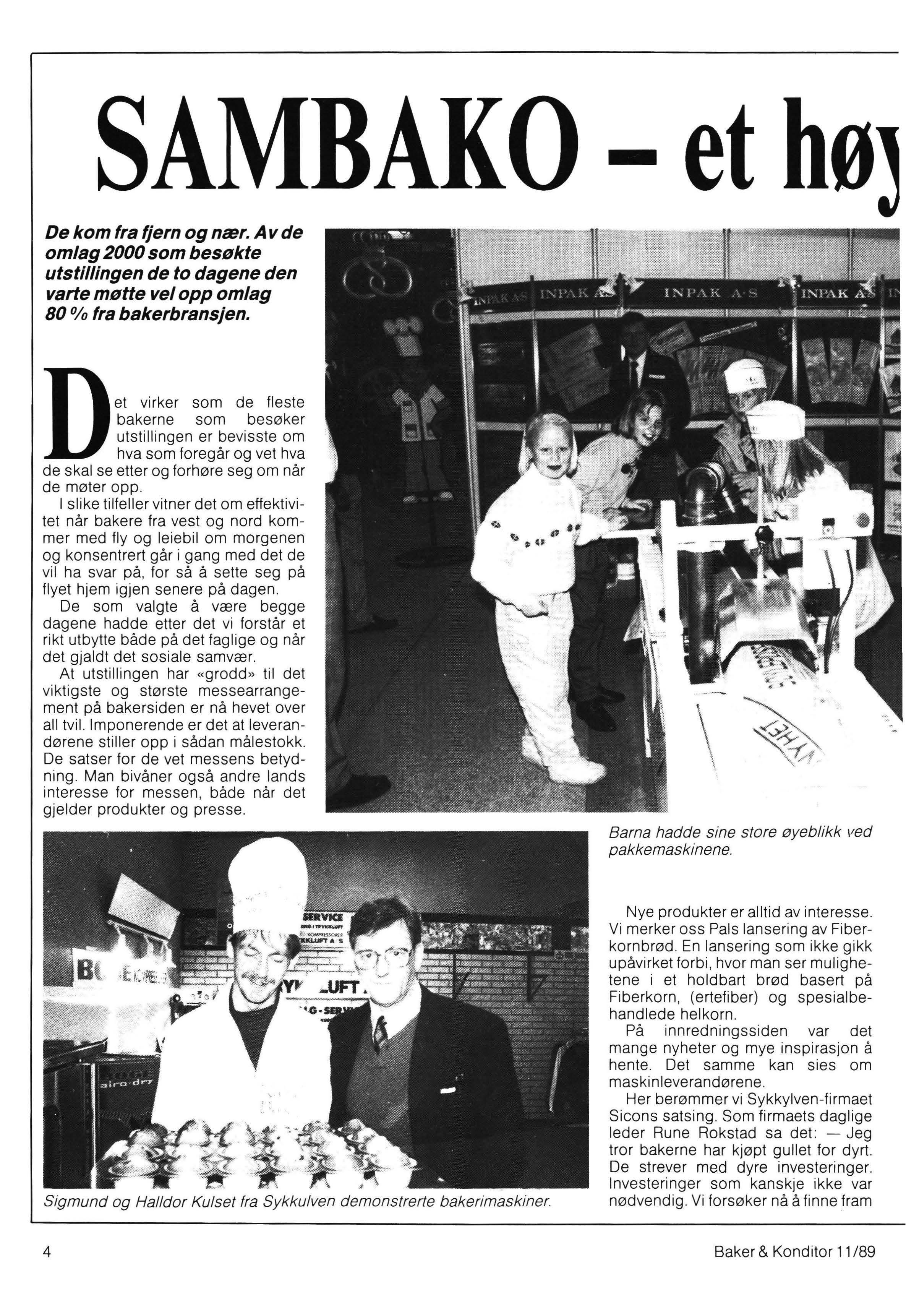 Her berømmer vi Sykkylven-firmaet Sicons satsing. Som firmaets daglige leder Rune Rokstad sa det : - Jeg tror bakerne har kjøpt gullet for dyrt. De strever med dyre investeringer. Investeringer som kanskje ikke var nødvendig Vi forsøker nå å finne fram Baker & Konditor 11 /89