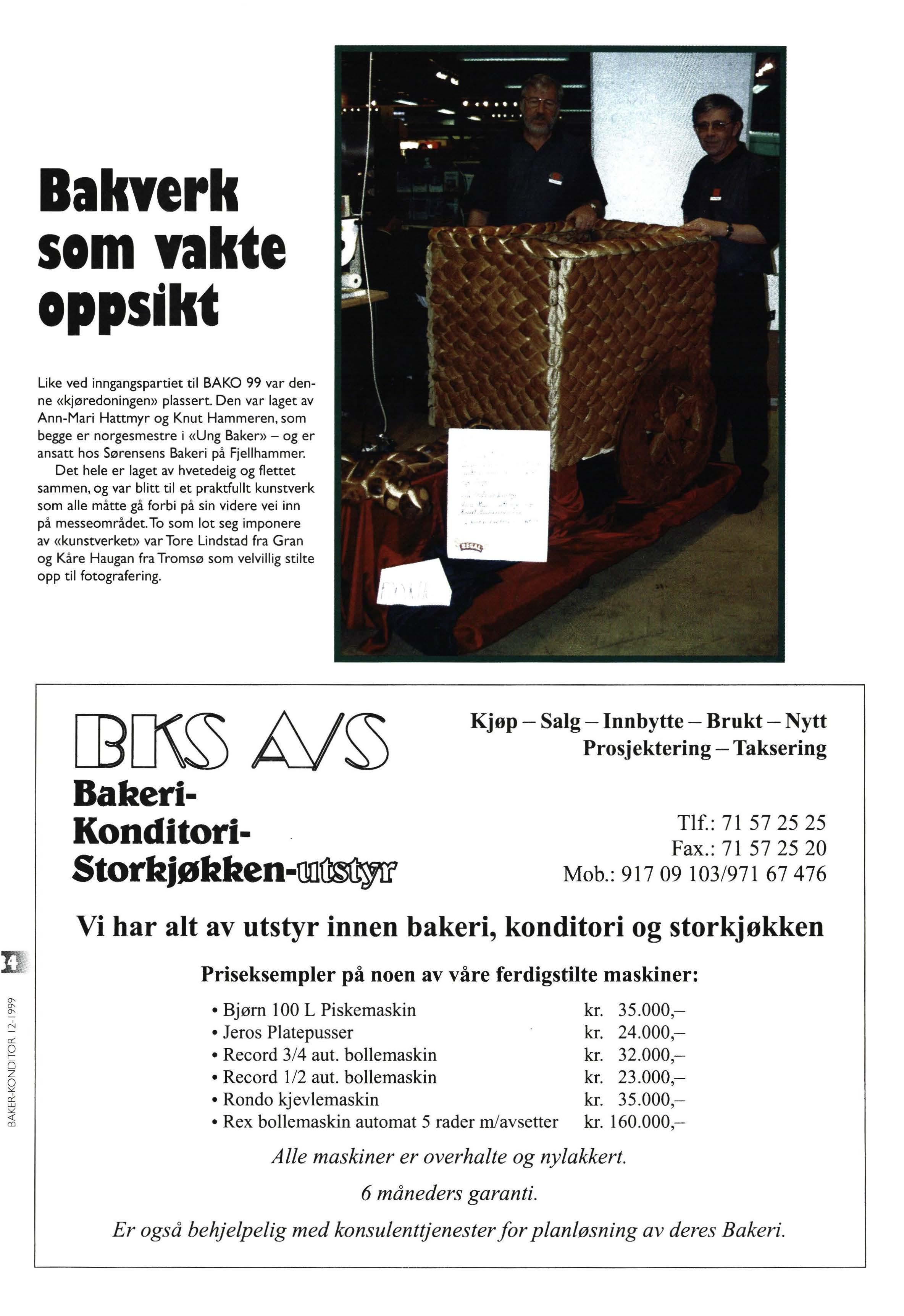 At så mange meldte avbud i siste liten førte som kjent til at NM i konditorkunst ble avlyst. Noe vi håper ikke skjer neste gang noe slikt skal arrangeres. BAKO 99 ble dermed en stor attraksjon fattigere.
