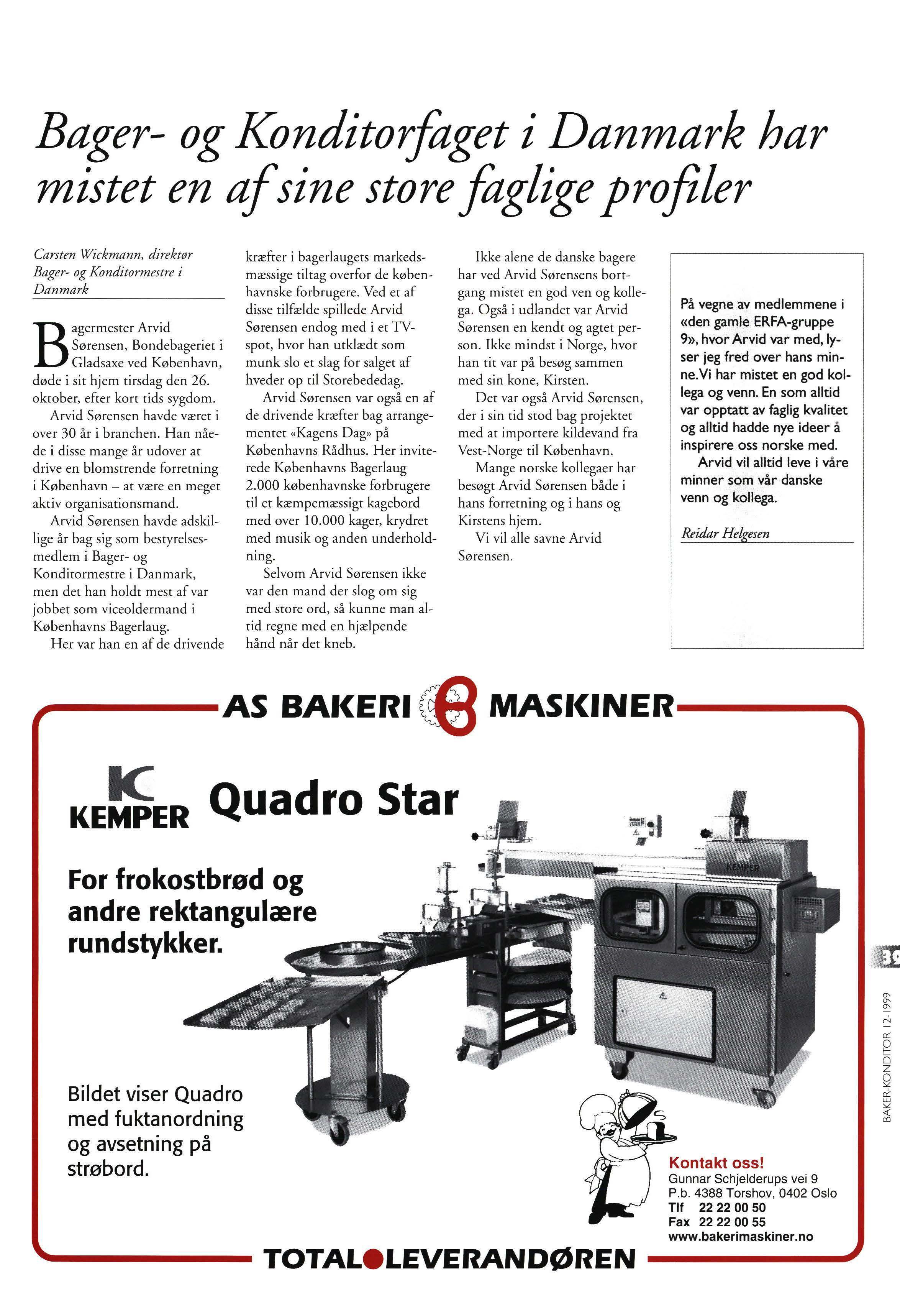 kræfter i bagerlaugets markedsmæssige tiltag overfor de københavnske forbrugere. Ved et af disse tilfælde spillede Arvid Sørensen endog med i et TVspot, hvor han utklædt som munk slo et slag for salget af hveder op til Storebededag.