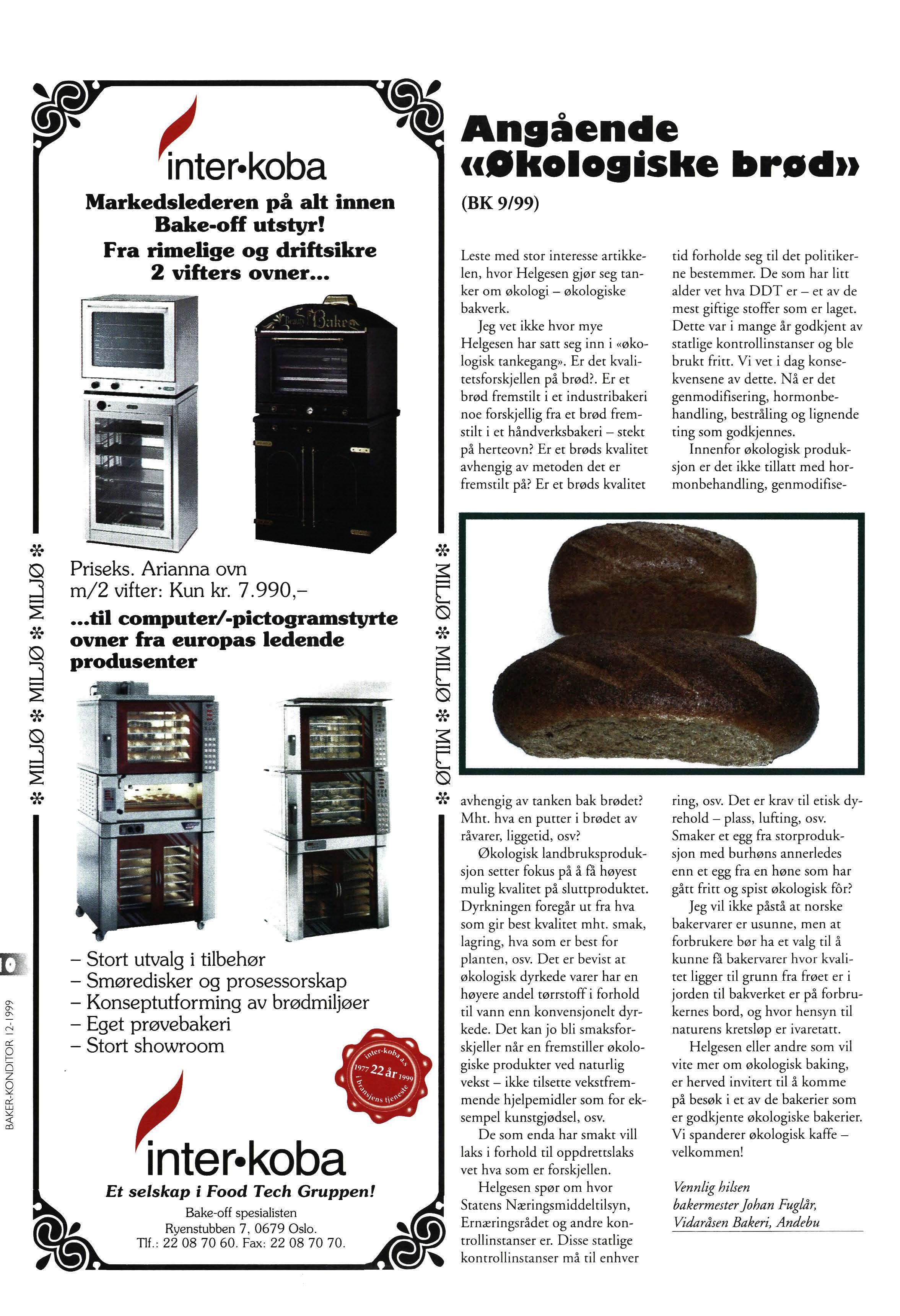 Jeg vil ikke påstå at norske bakervarer er usunne, men at forbrukere bør ha et valg ril å kunne få bakervarer hvor kvalitet ligger ril grunn fra frøet er i jorden til bakverket er på forbrukernes bord, og hvor hensyn til naturens kretsløp er ivaretatt. Helgesen eller andre som vil vite mer om økologisk baking, er herved invitert til å komme på besøk i et av de bakerier som er godkjente økologiske bakerier. Vi spanderer økologisk kaffevelkommen!