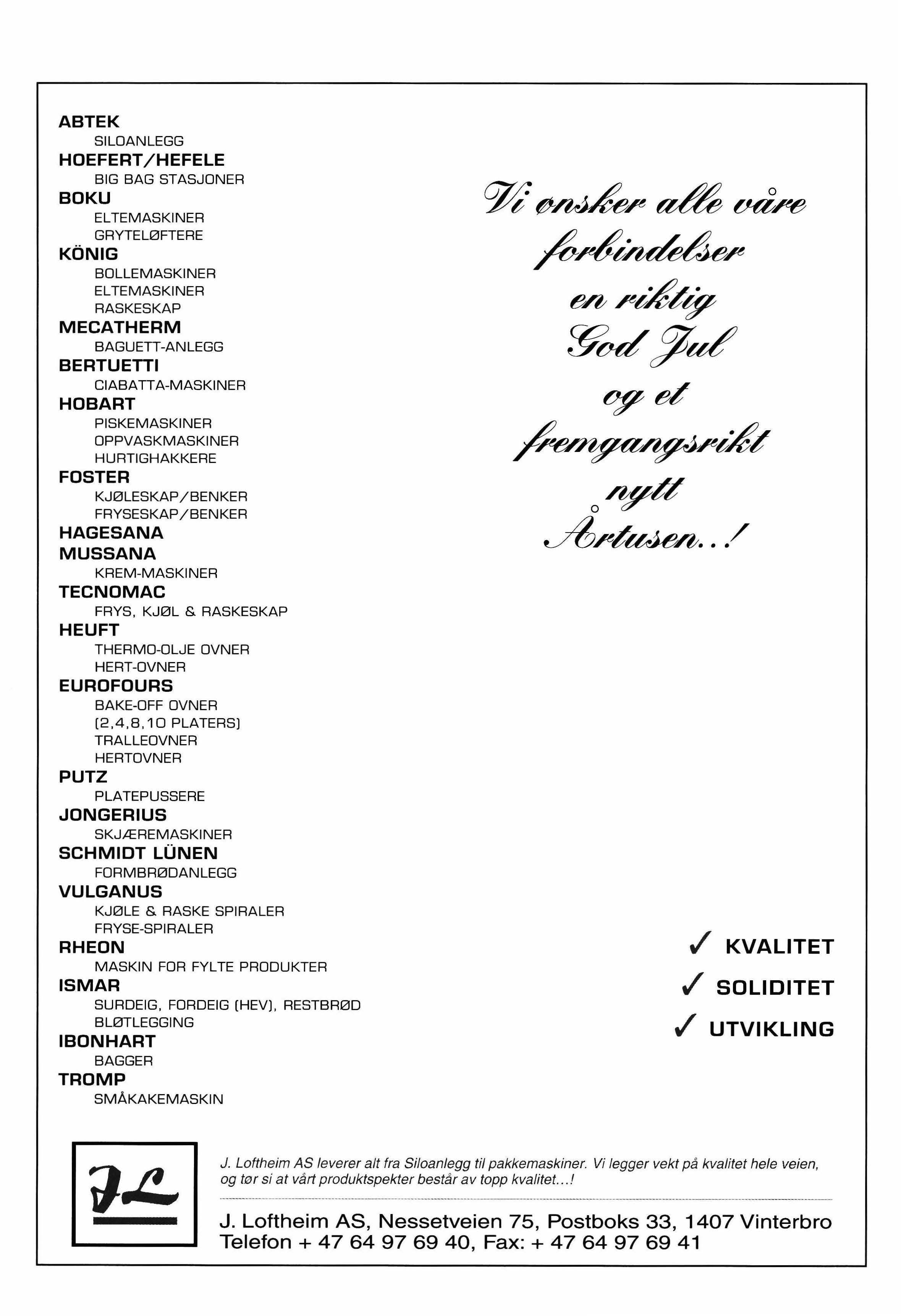 Firmaet hadde også lagt seg i selen og laget en egen messeavis basert på sine produkter. At Loftheim i dag har en rekke kvalitetsprodukter av interesse ble understreket på denne messen. Blant annet en maskin beregnet på fylte bakverk. Når vi er inne på fylte bakverk var Matforsks stand verdt et besøk. Der hadde