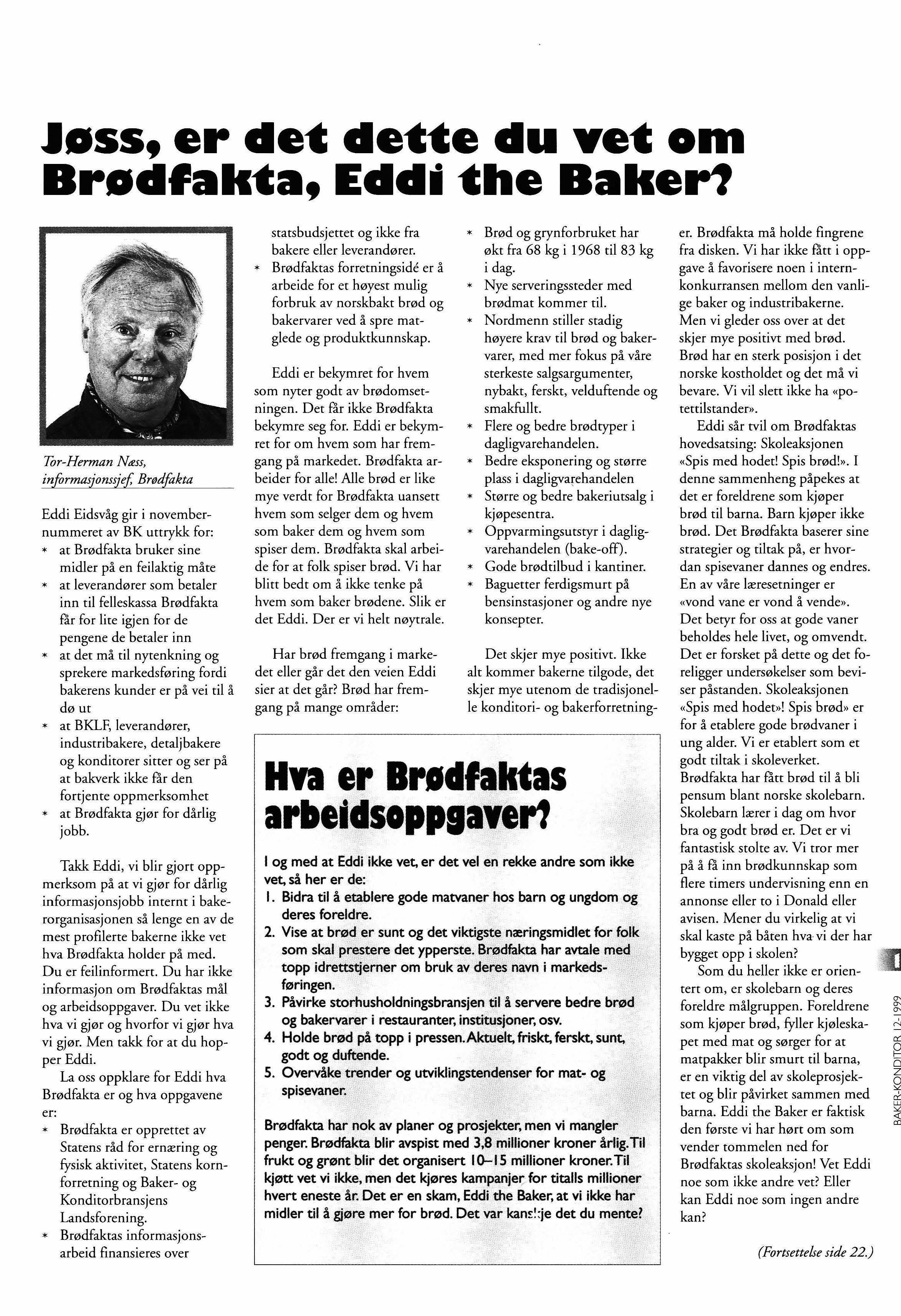på 80- og 90-tallet. Det norske brødmarkedet endret seg fra et overveiende billig «kneippbrød-marked» midt på 80-tallet, til et marked med stort mangfold der forbrukerne betaler ofte godt over 20 kr pr. brød: - Bør ikke næringen kjenne sin besøkelsestid i dette markedet der forbrukerprisene har hatt en slik utvikling? spør Stiftelsen som etterlyser sterkere «trøkk» og interesse fra næringen.
