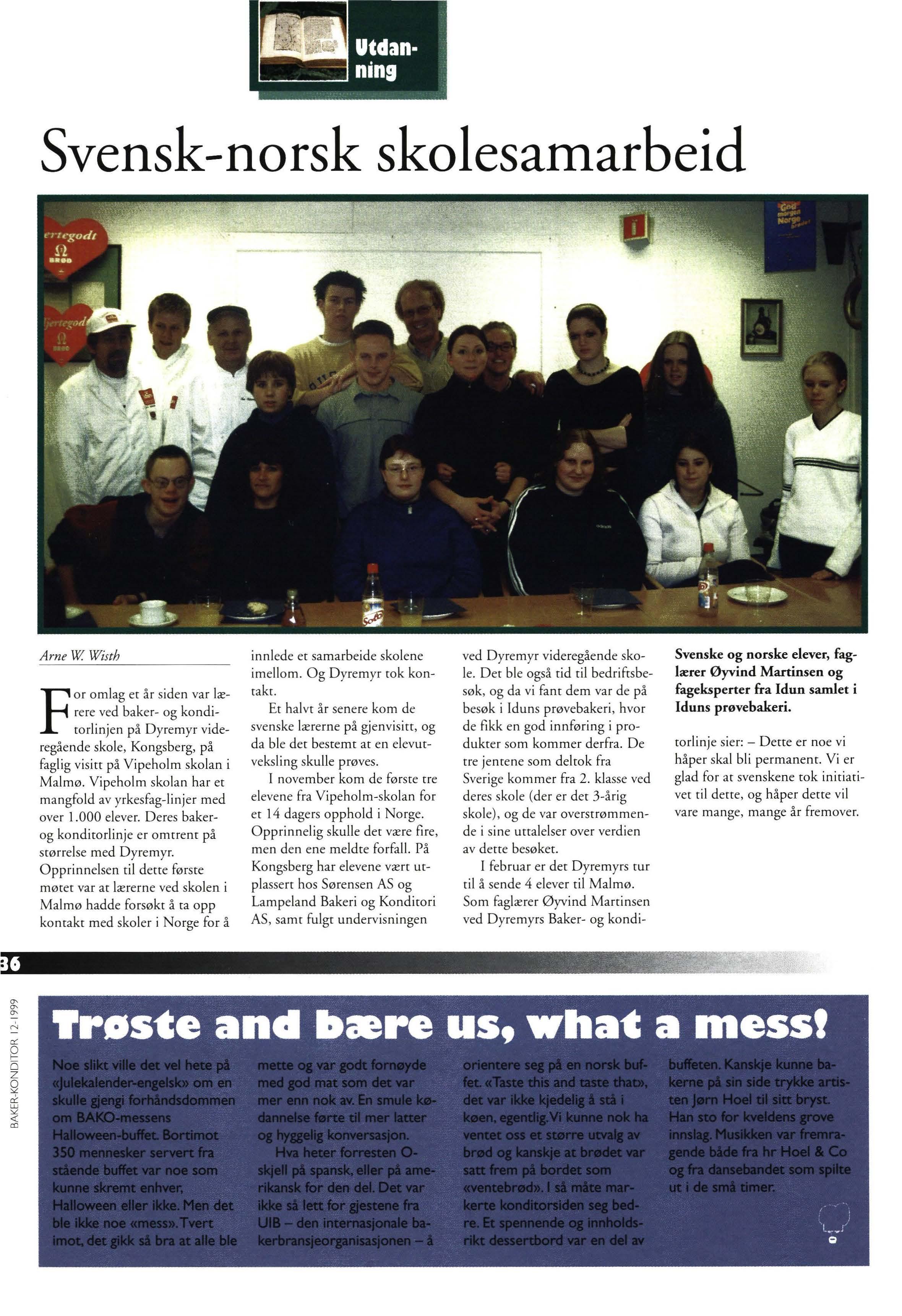 For omlag et år siden var lærere ved baker- og konditorlinjen på Dyremyr videregående skole, Kongsberg, på faglig visitt på Vipeholm skolan i Malmø. Vipeholm skolan har et mangfold av yrkesfag-linjer med over 1.000 elever. Deres bakerog konditorlinje er omtrent på størrelse med Dyremyr.