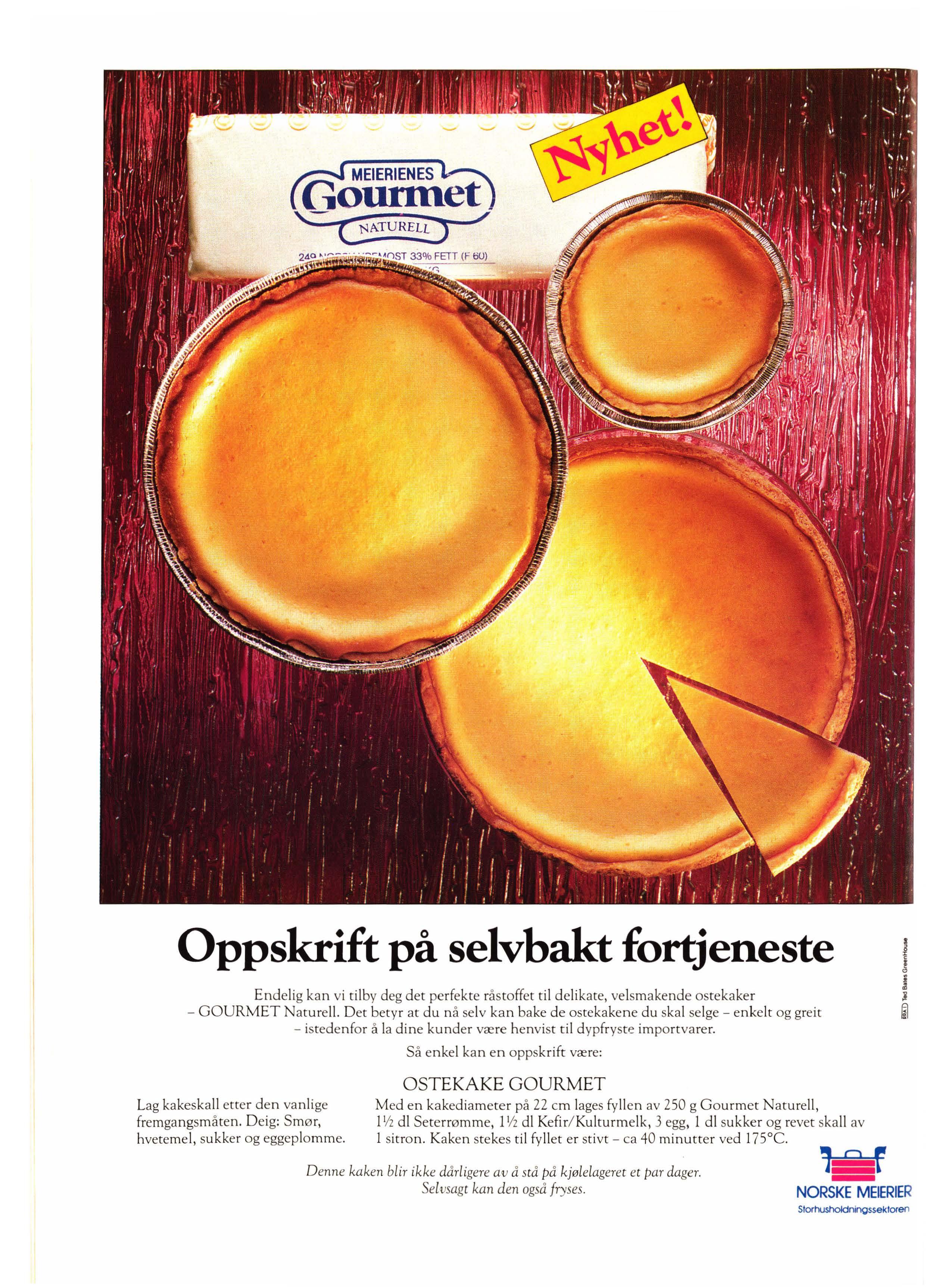 End e li g kan vi tilb y de g det perfekte råsto ffet til delik ate, ve l sm aken d e os t ekake r - GOURMET Nat ure ll. D e t betyr at du n å se lv k a n bake d e ostekakene du ska l se lge - enke lt og gre it - is t ede nfor å la dine kunder væ re h e n v ist til d ypfrys t ~ imp o rt va re r. Så e nk e l kan e n opps krift væ re :