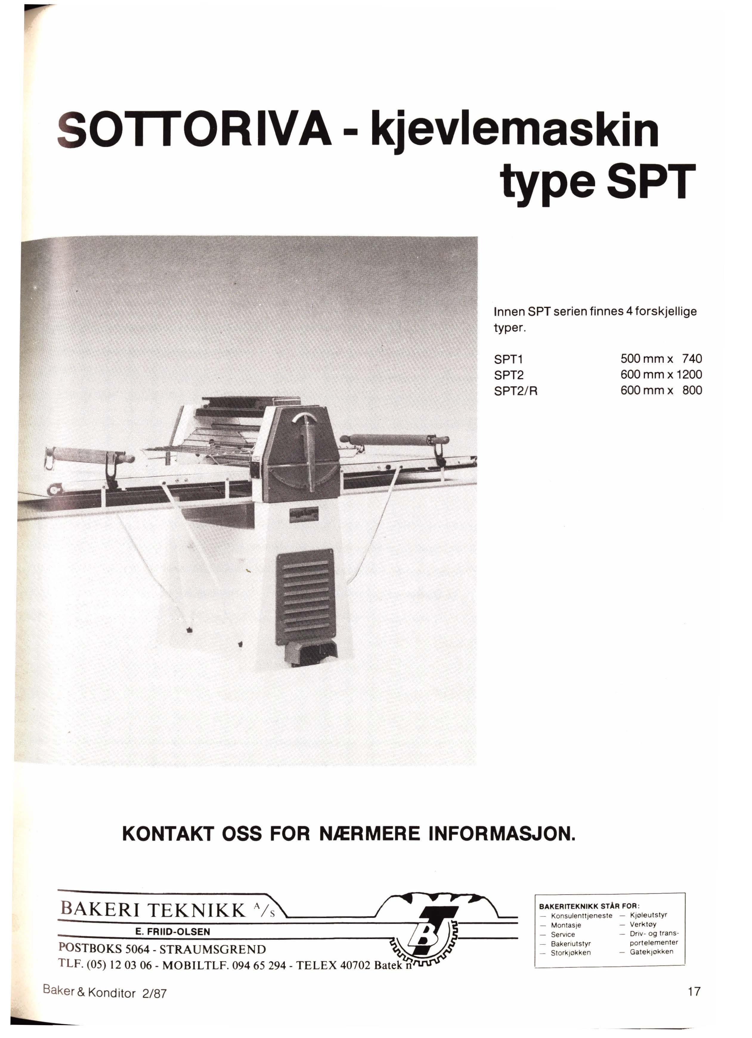 Vi er leverandør av: Glaseringsmaskiner , Carpigiani Pastocrema , Brødpakkeanlegg, «ALBERT» Posepakker , lnma Bakeri-innredning , som er blitt levert i et antall av 12 stk i 1986.