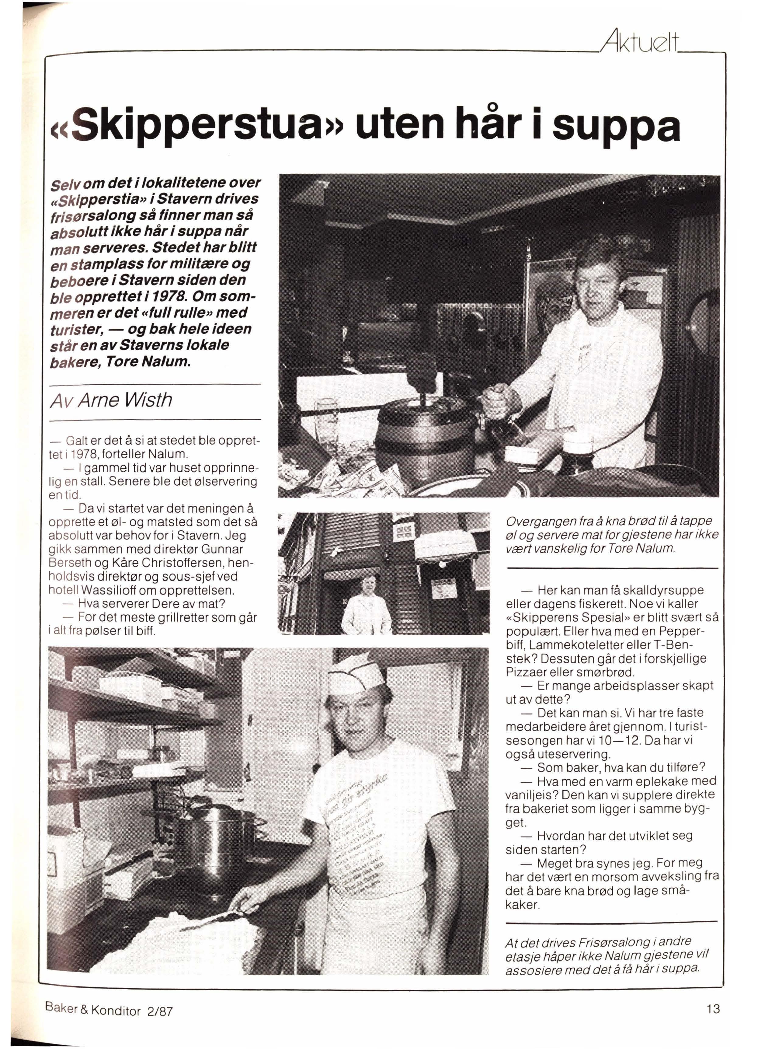 - Den var igrunnen ikke det. Jeg hadde en bror som var ment til å gå inn i yrket. Dessverre døde han bare 11 år gammel og dermed var jeg eneste sønn som kunne hjelpe far Riktignok jobbet jeg tre år på kontoret til en skipshandel etter at jeg hadde fullført Handelsgymnaset , men etter hvert ble det kun bakeryrket.