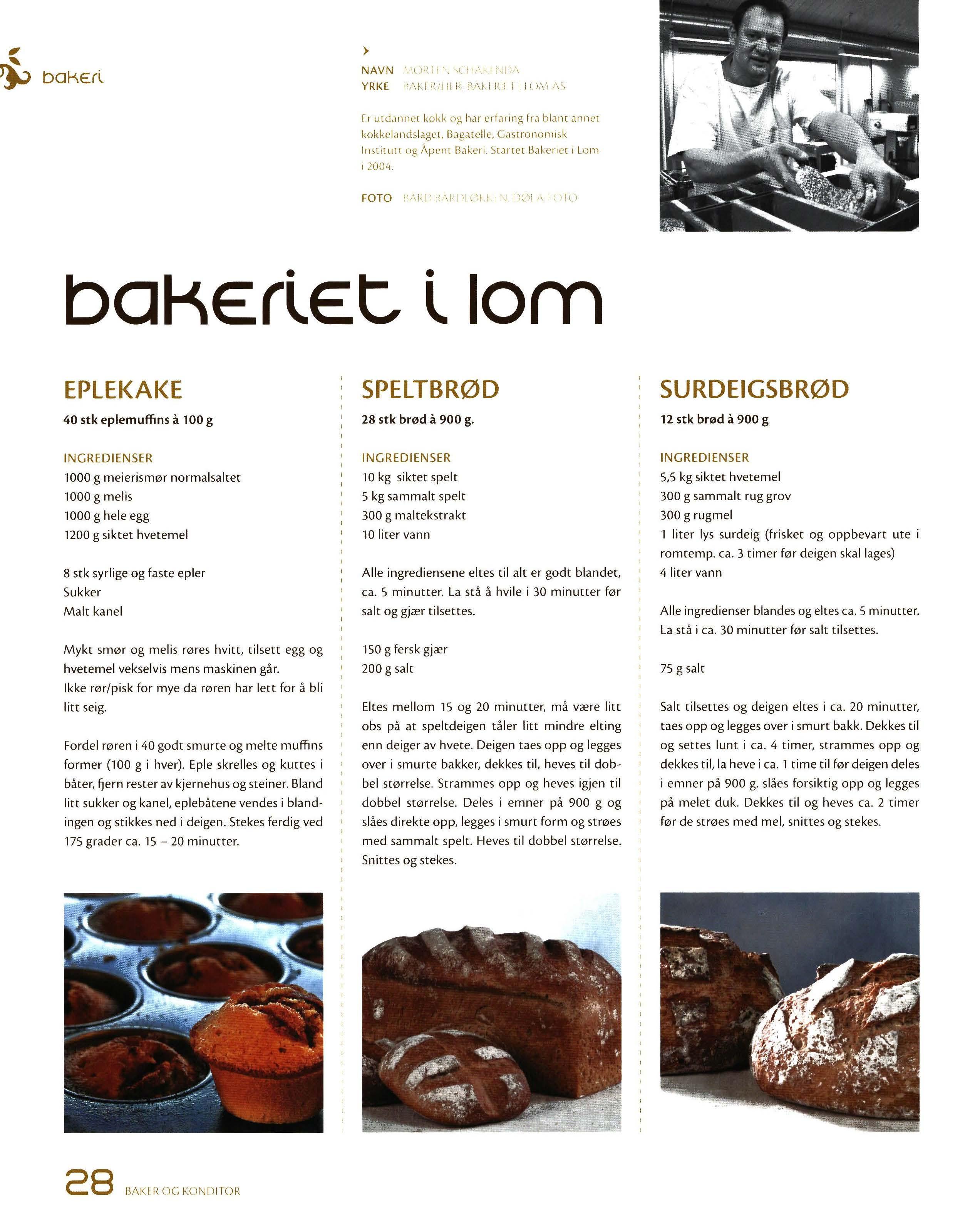 i l vår bransje TRADISJONER Påske RESEPTER KONDITORI 21 22 Bernhard Azinger h os Tine In gred i ens 26 RESEPTER BAKERI Morte n Sc h akenda ho s Bakeriet i Lom 28