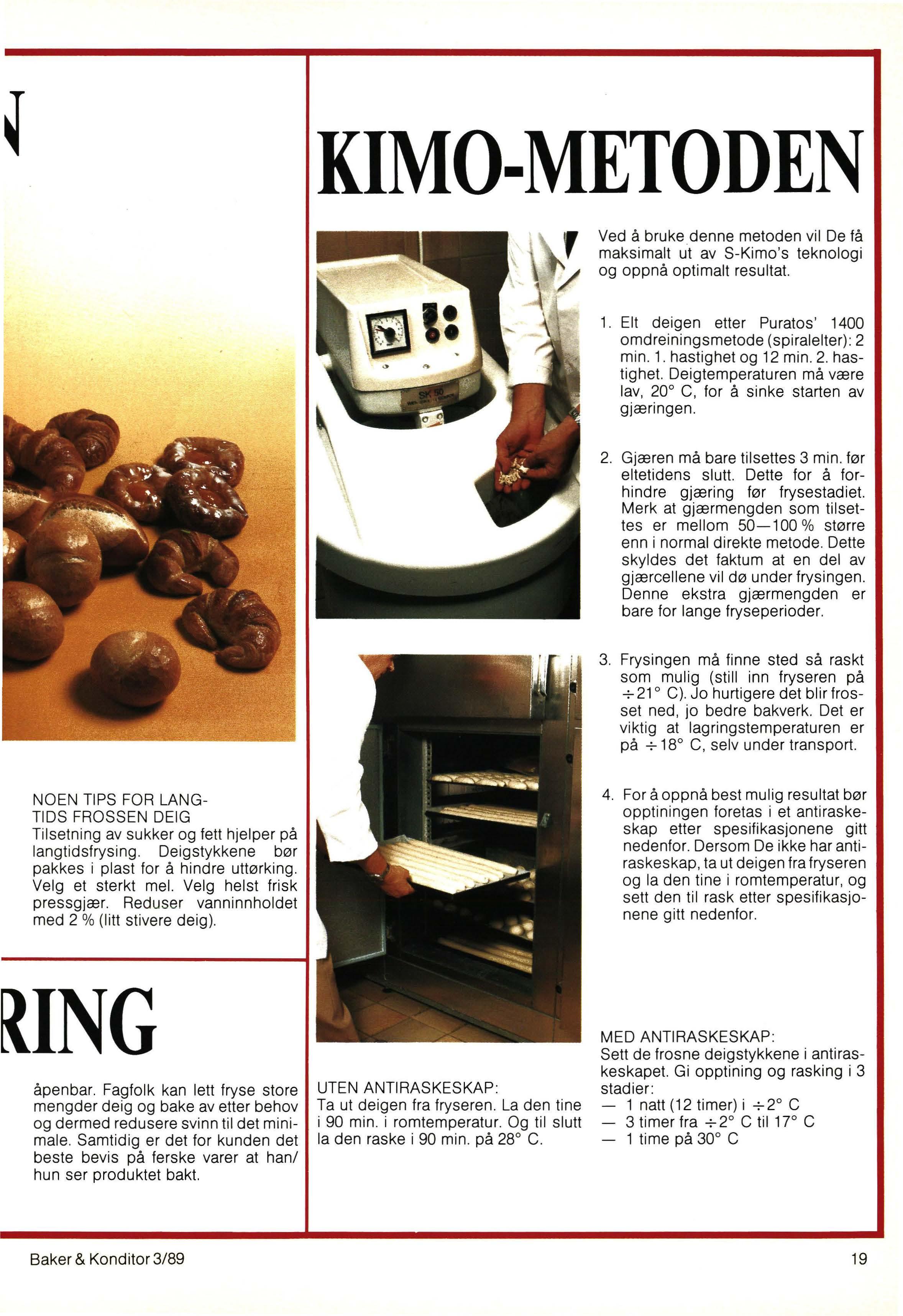 Forsker Bente Nersten jobber med denne fryseteknikken. Hun forteller at frossen deig er mest brukt til småbakst som wienerbrød og rundstykker, men at man også kan bruke samme teknikken på loff og kneipbrød. Grovere brød er ikke å anbefale. Bakeprosessen må gå raskt for at gjæren ikke får begynne sin gjæringsprosess. I fryseren legges deigen i minus åtte grader i opptil fjorten dager. Skal den ligge lengre senkes frysetemperaturen til 18-20 grader minus. En frossen deig må tilsettes mer gjær enn vanlig og melet må være av god kvalitet.