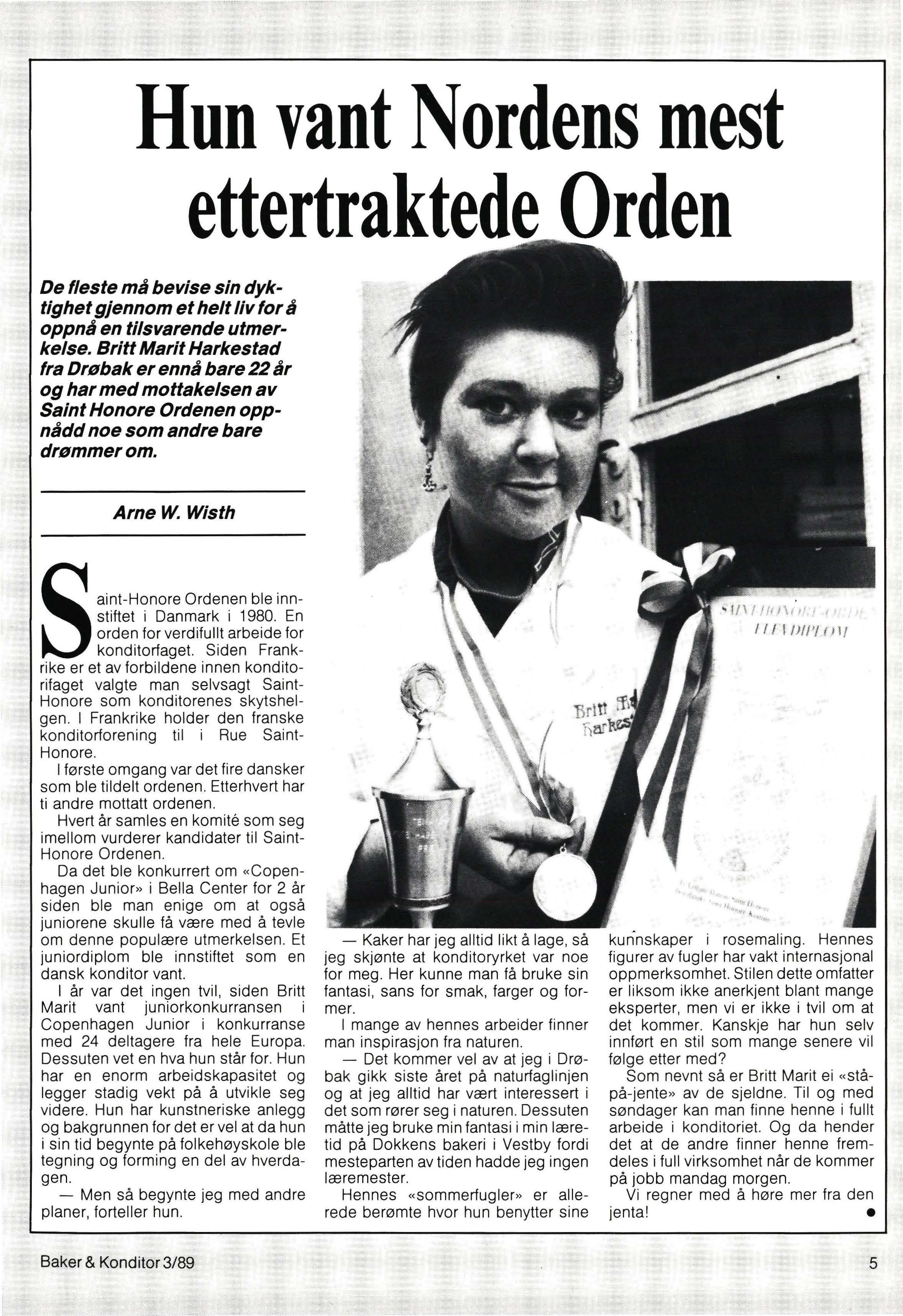 De fleste må bevise sin dyktighet gjennom et helt liv for å oppnå en tilsvarende utmerkelse. Britt Marit Harkestad fra Drøbak er ennå bare 22 år og har med mottakelsen av Saint Honore Ordenen oppnådd noe som andre bare drømmerom.