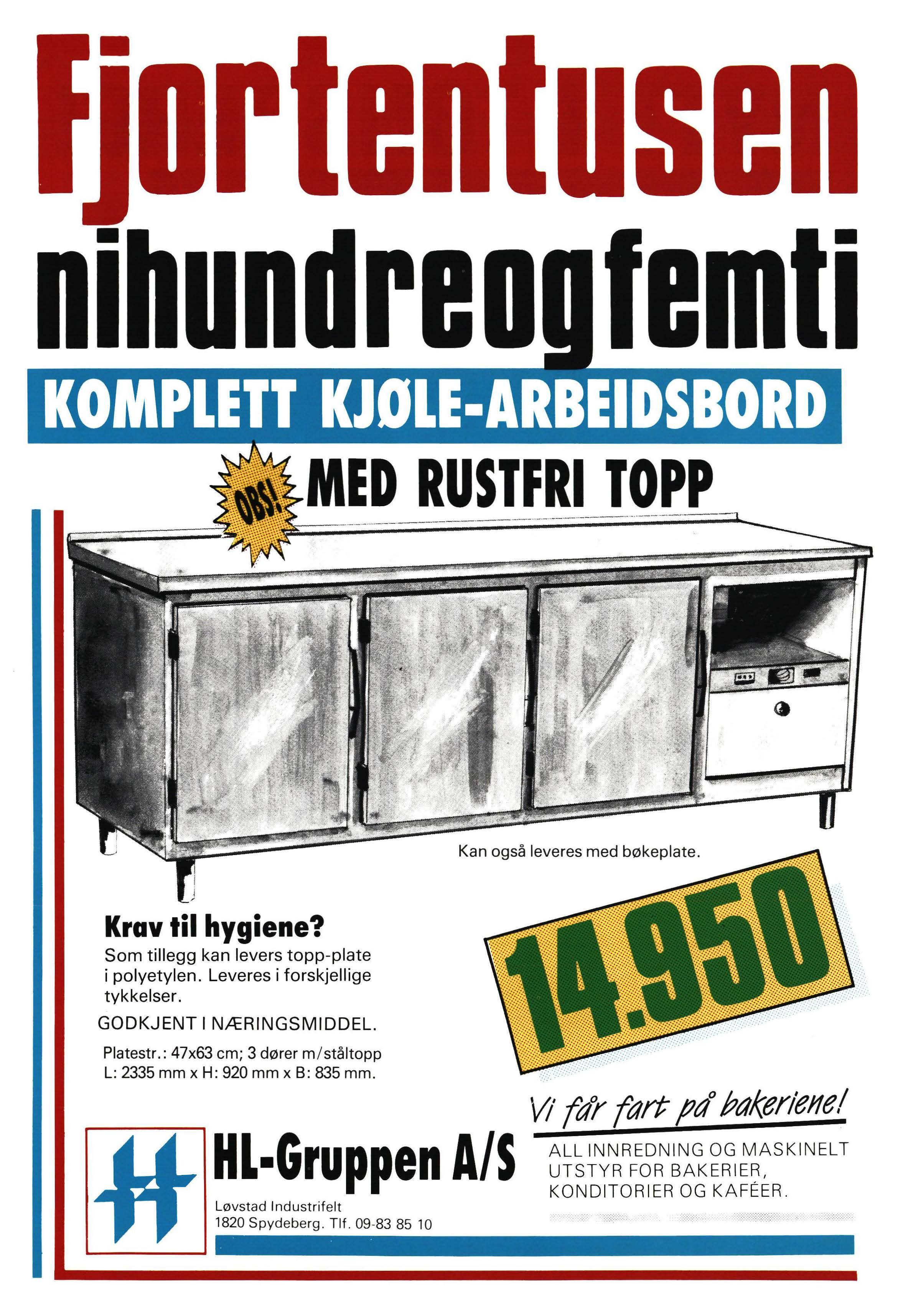Kjølte smørbrød/kakedisker. nye L-1.40 m ., 1,60 m 2 salgsflate. fra kr 23 530. Kjølte arbeidsbord salatdisker m.m. Amerikansk convention bakeovner fra kr 21 240.
