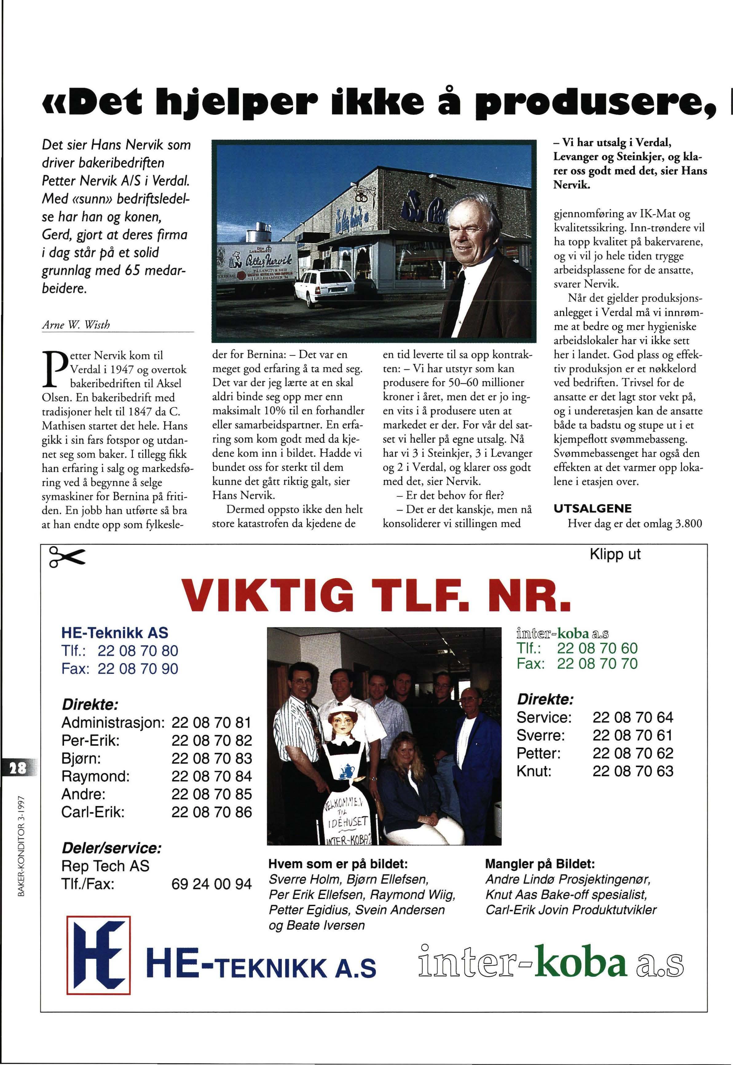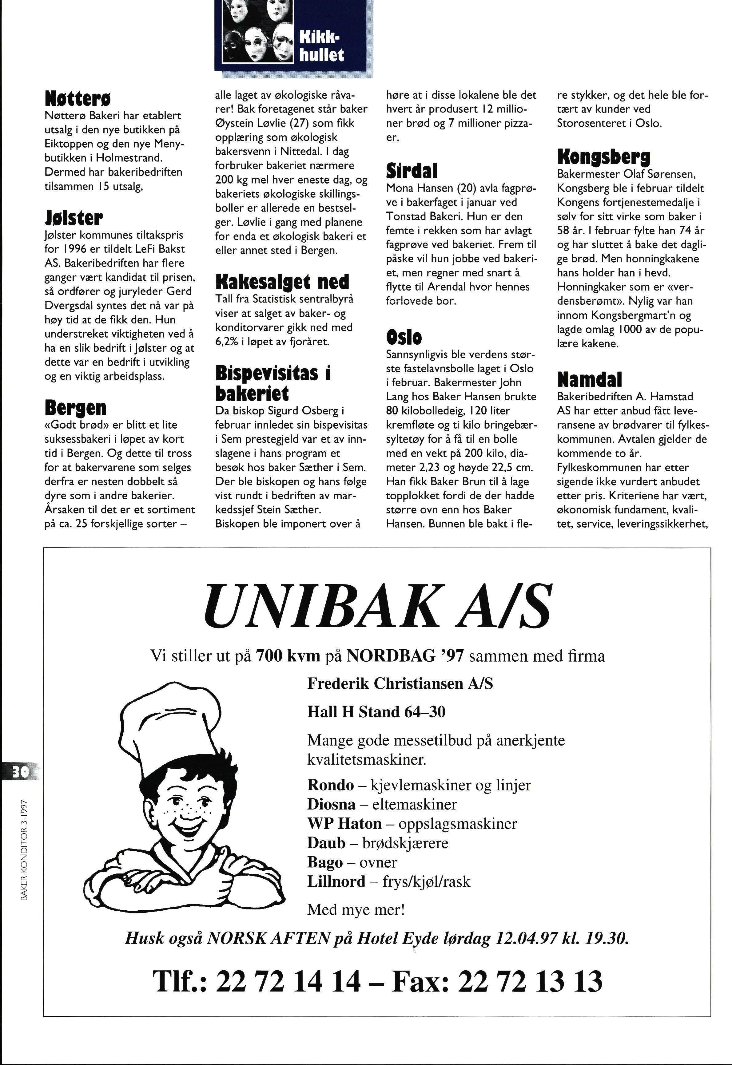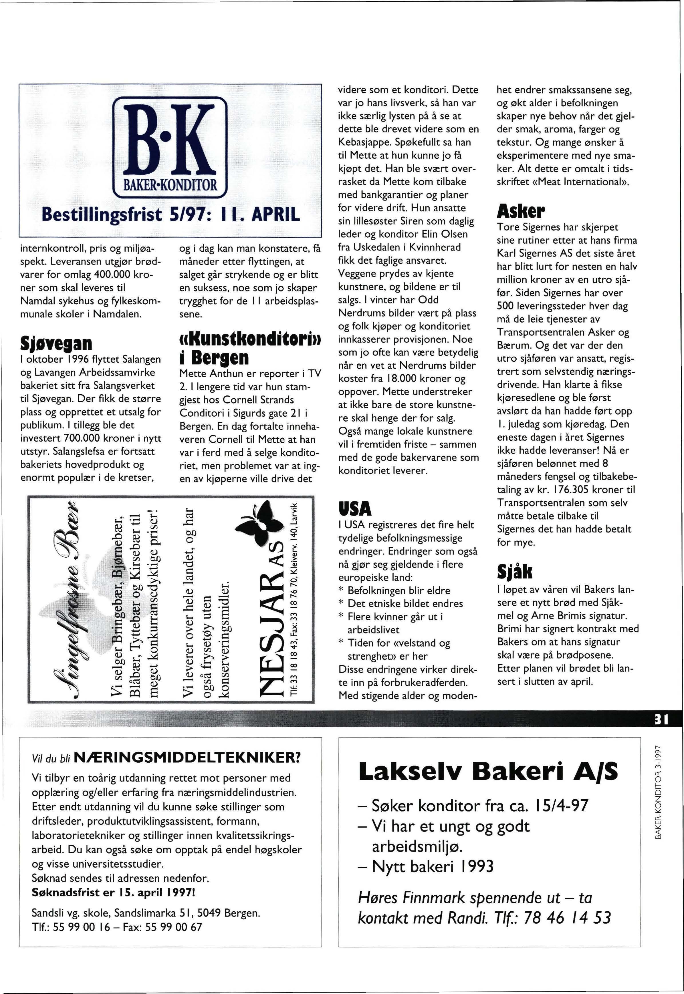 - Søker konditor fra ca. I 5/4-97 - Vi har et ungt og godt arbeidsmiljø. - Nytt bakeri 1993