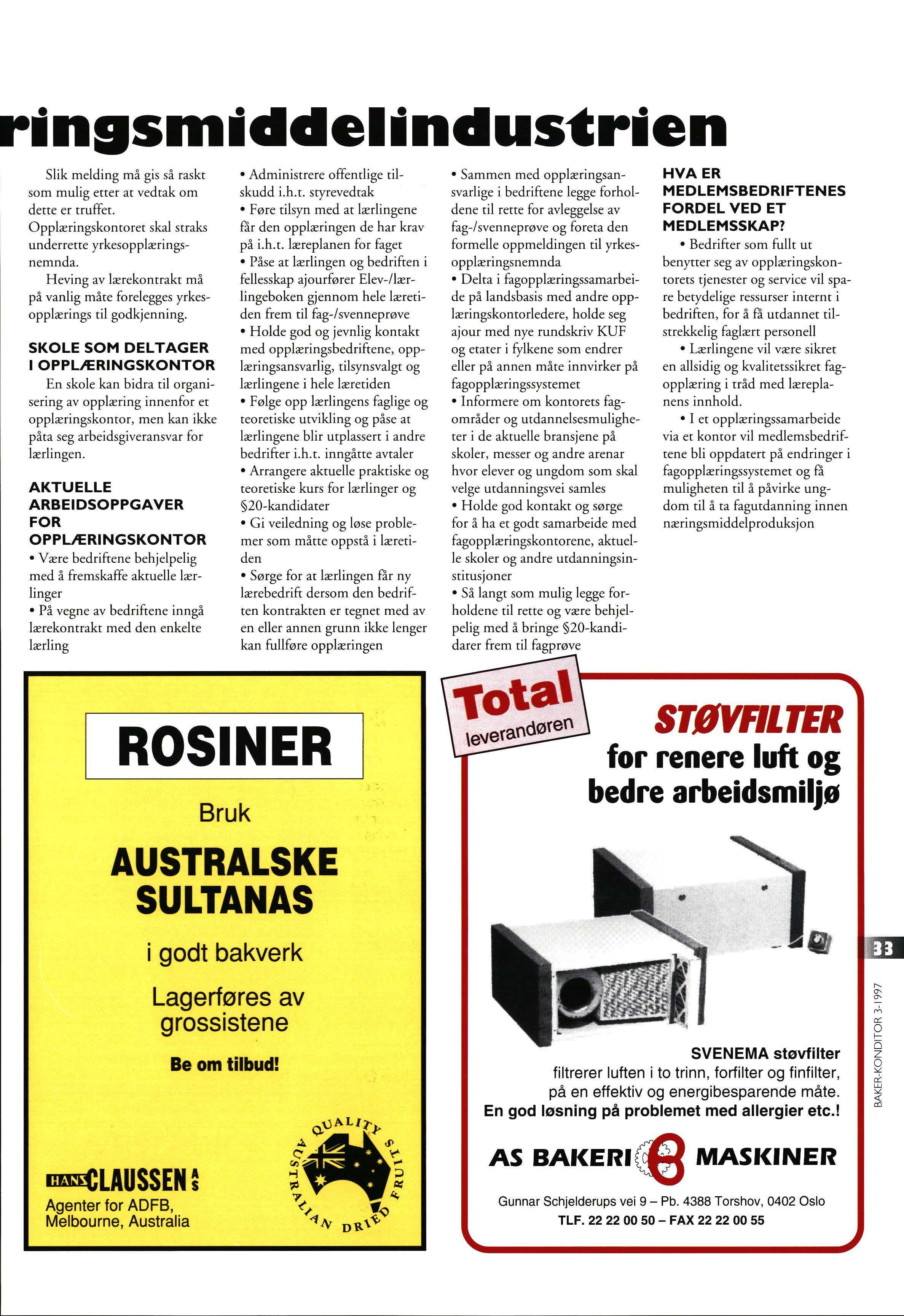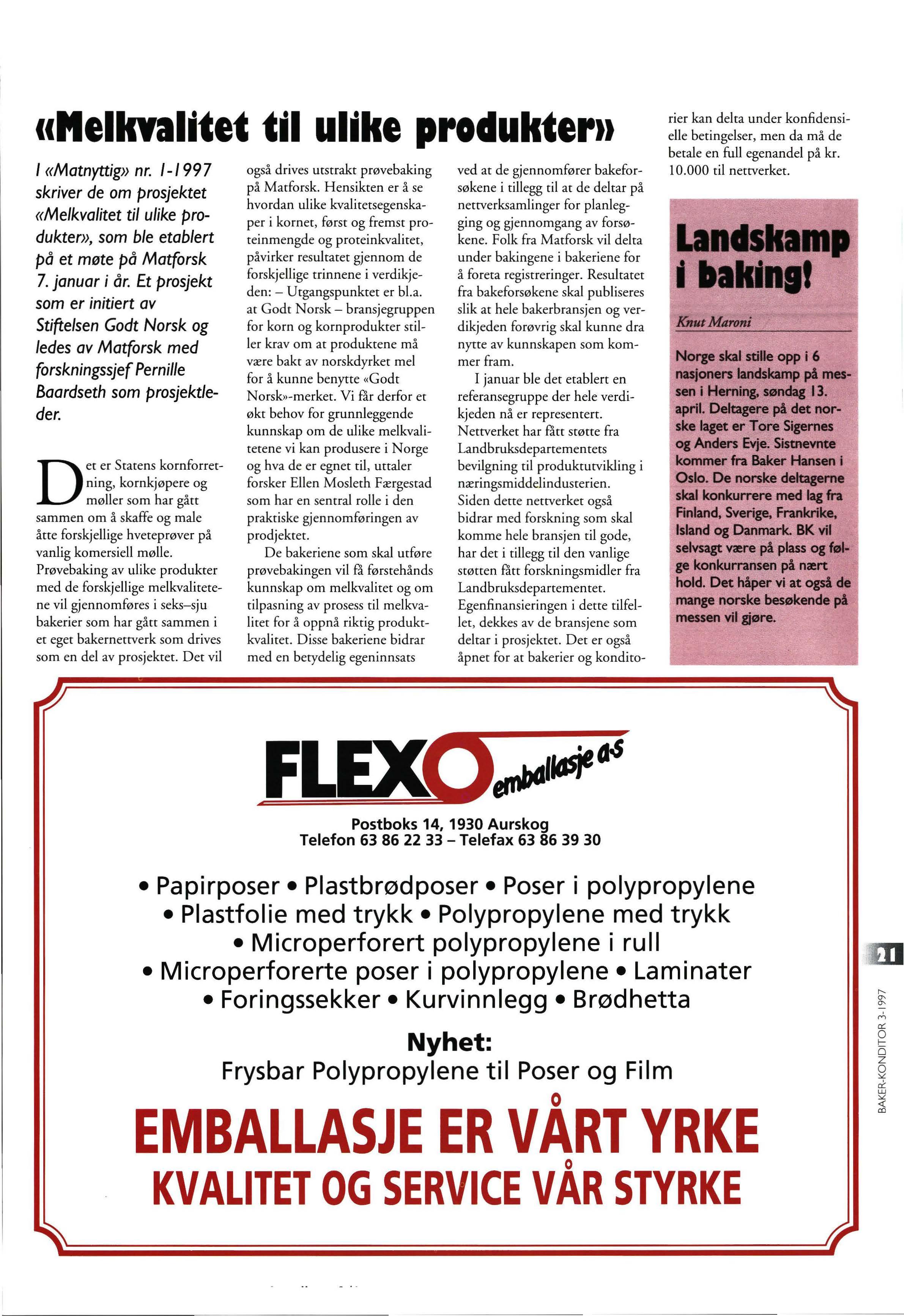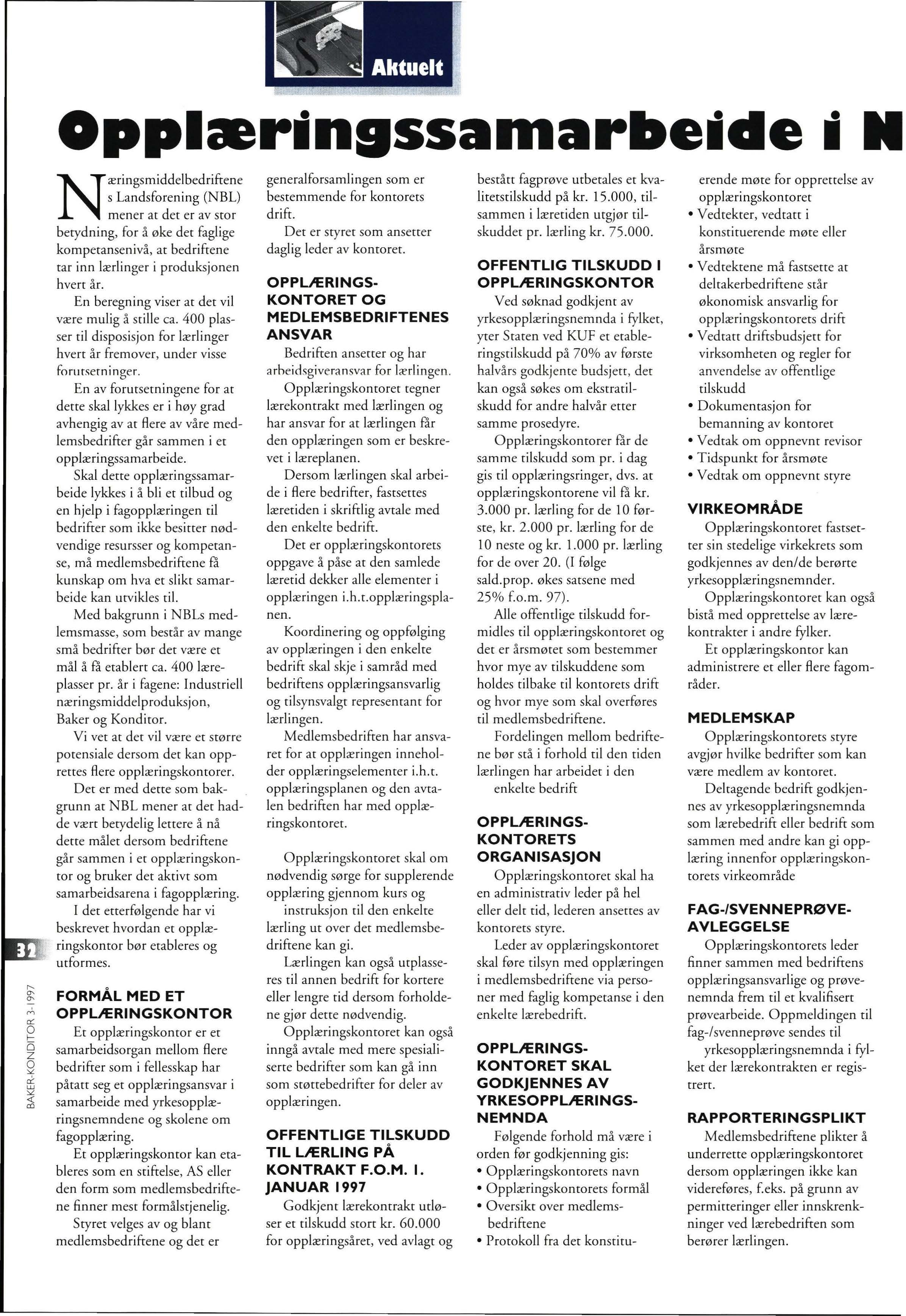 kefull informasjon både når det gjelder lærlingesituasjonen i Norge og opplæringen på baker- og konditorlinjene her i landet. I en senere utgave av BK