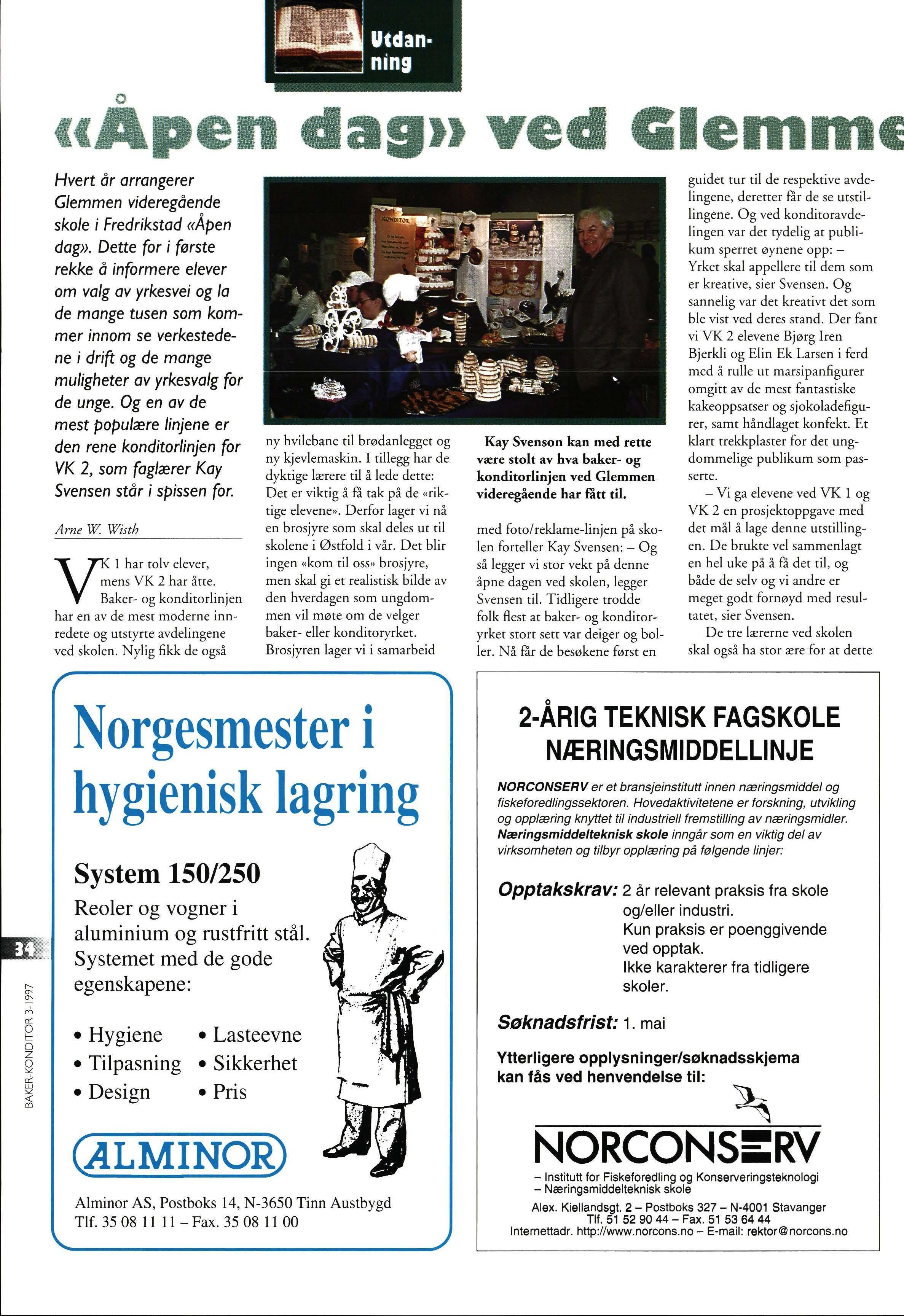 Hvert år arrangerer Glemmen videregående skole i Fredrikstad «Åpen dag». Dette for i første rekke å informere elever om valg av yrkesvei og la de mange tusen som kommer innom se verkestedene i dri~ og de mange muligheter av yrkesvalg for de unge. Og en av de mest populære linjene er den rene konditorlinjen for VK 2, som faglærer Kay Svensen står i spissen for.