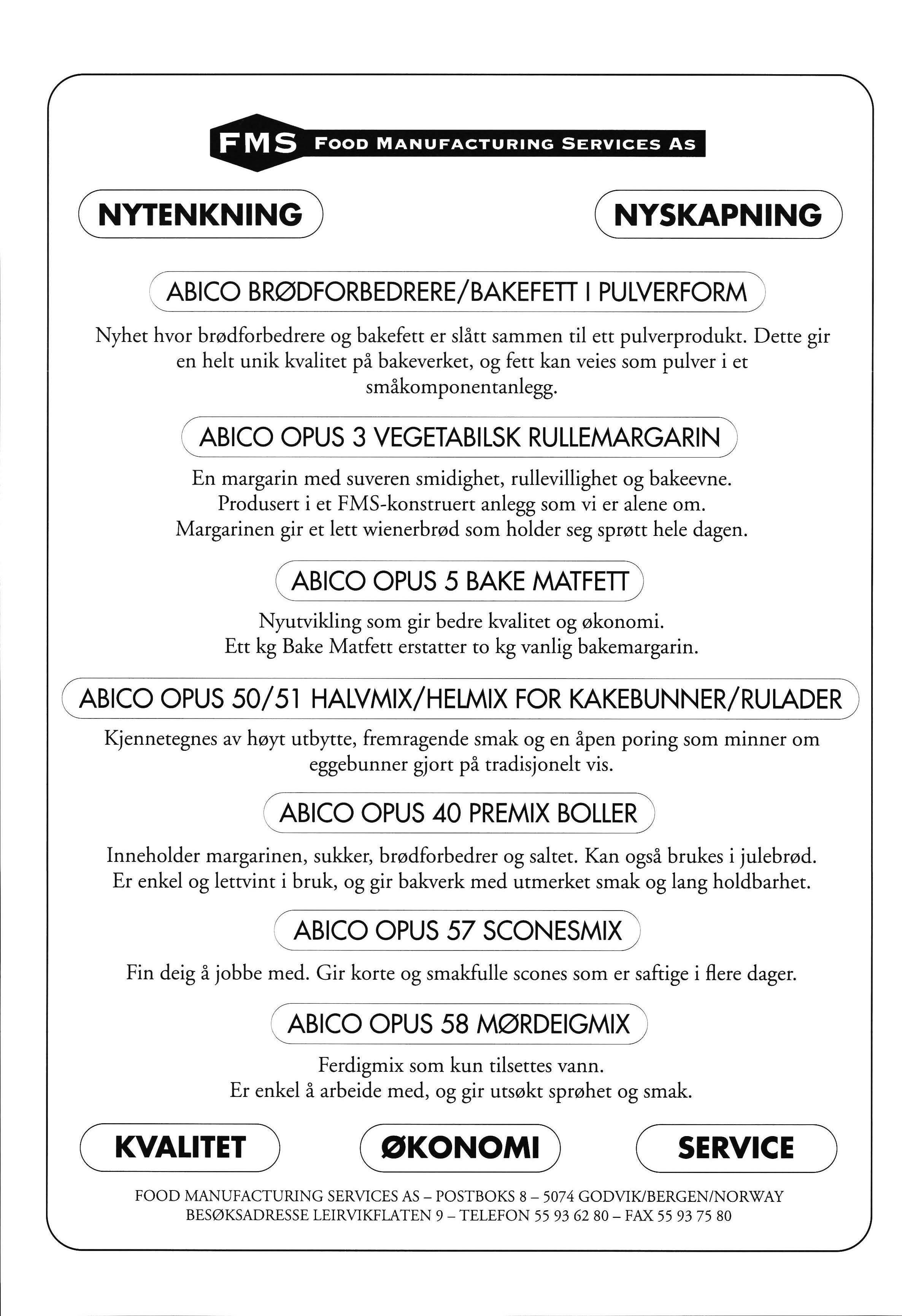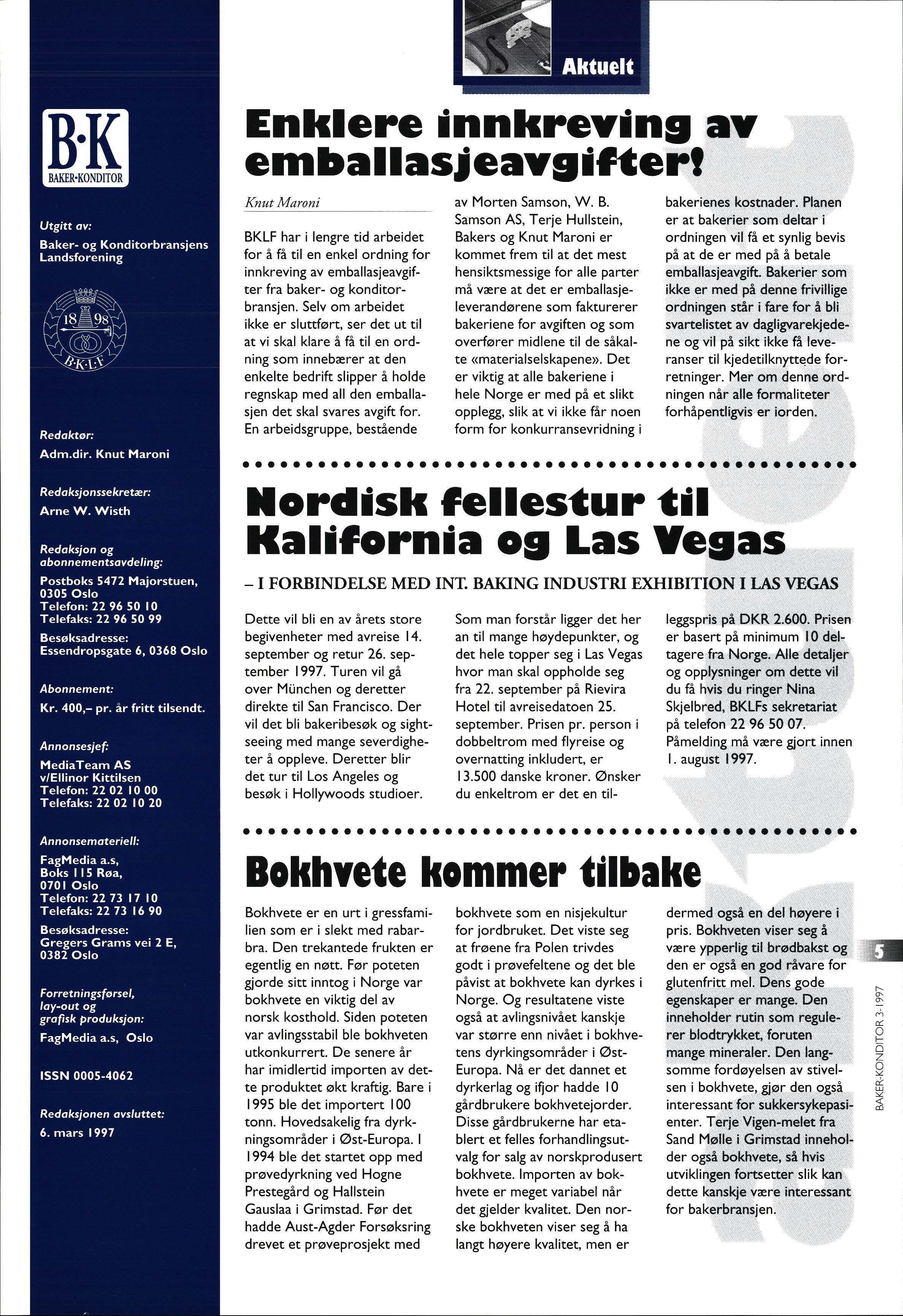 av Morten Samson, W. B. Samson AS, Terje Hullstein, Bakers og Knut Maroni er kommet frem til at det mest hensiktsmessige for alle parter må være at det er emballasjeleverandørene som fakturerer bakeriene for avgiften og som overfører midlene til de såkalte «materialselskapene». Det er viktig at alle bakeriene i hele Norge er med på et slikt opplegg, slik at vi ikke får noen form for konkurransevridning i
