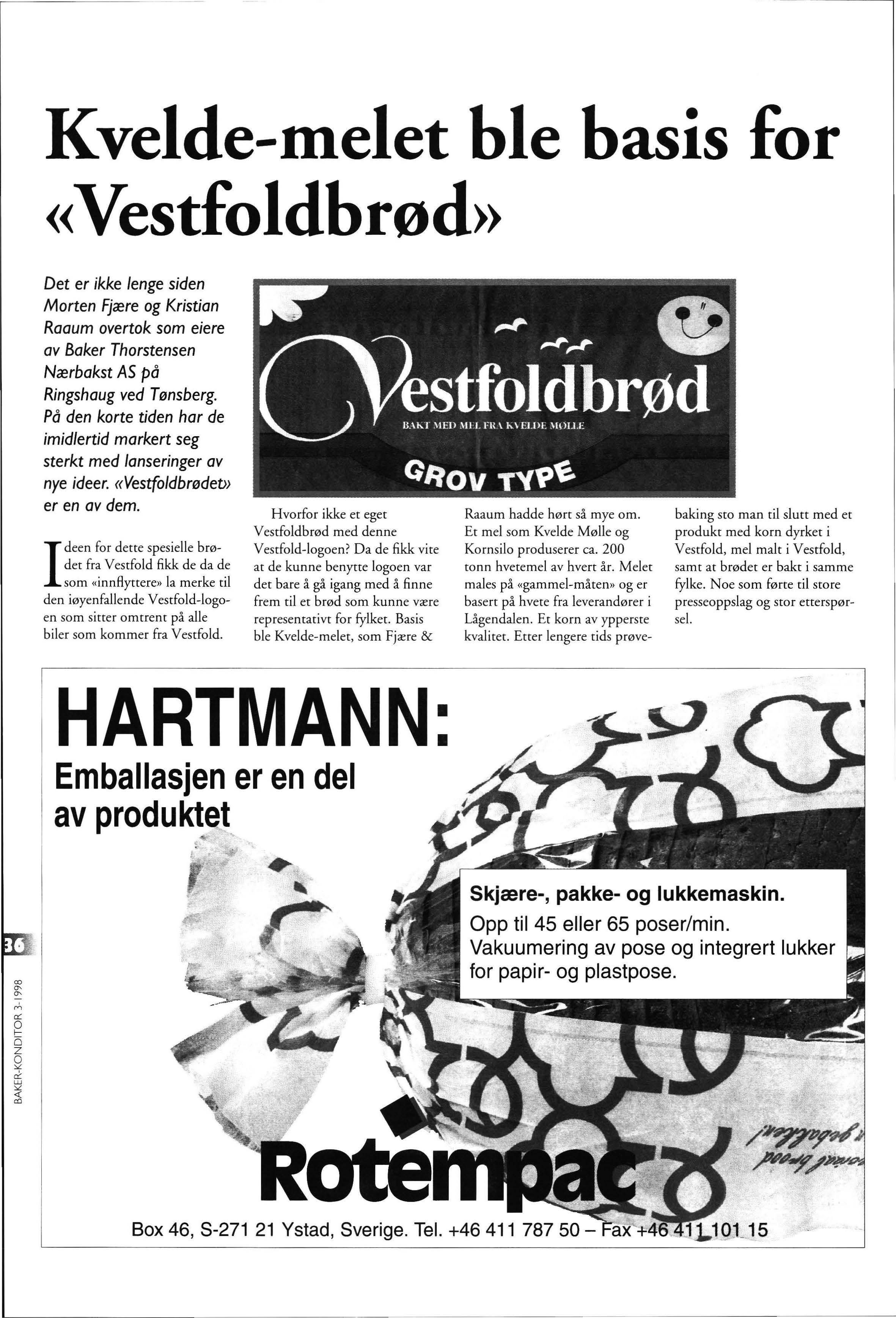 Det er ikke lenge siden Morten Fjære og Kristian Raaum overtok som eiere av Baker Thorstensen Nærbakst AS på Ringshaug ved Tønsberg. På den korte tiden har de imidlertid markert seg sterkt med lanseringer av nye ideer. «Vestfoldbrødet>> er en av dem.