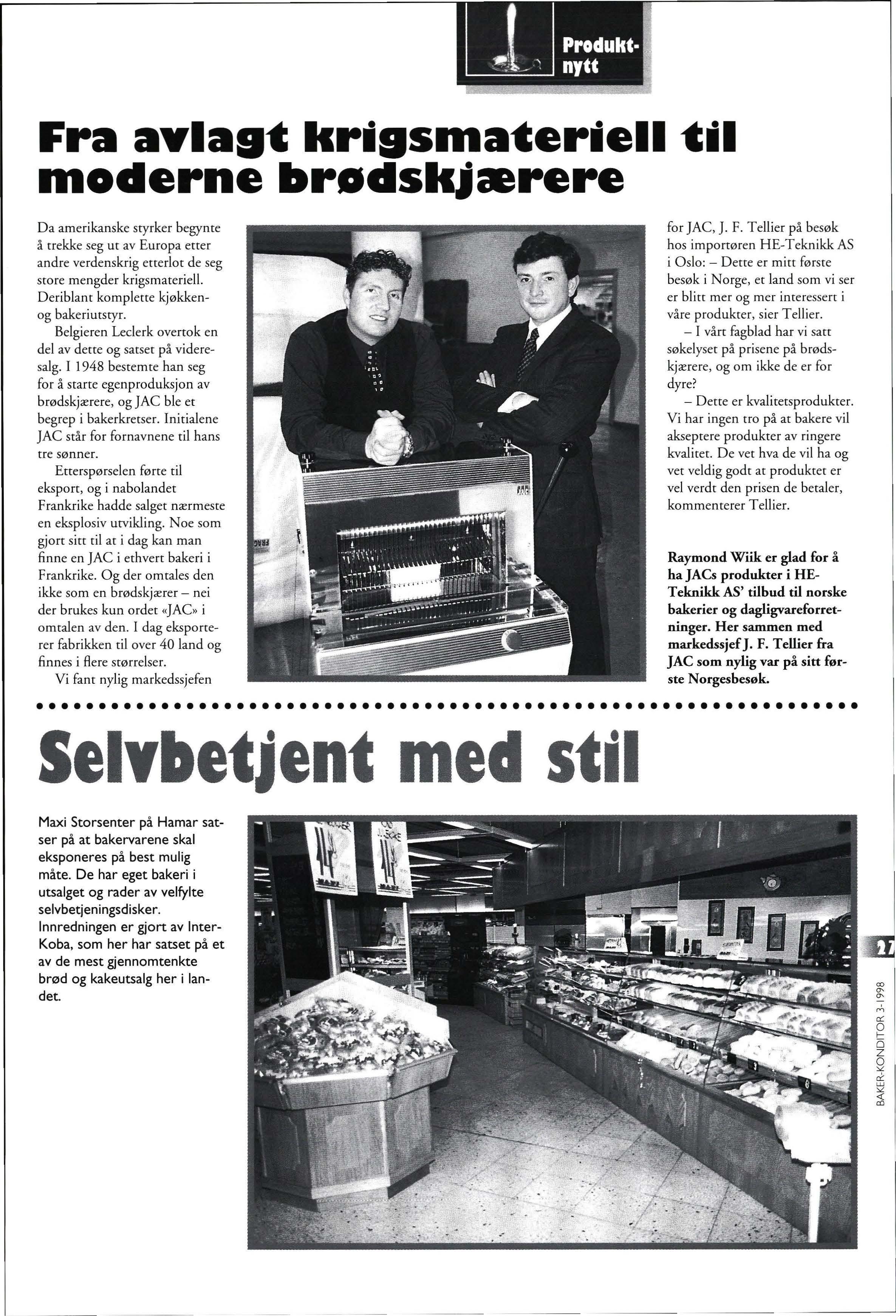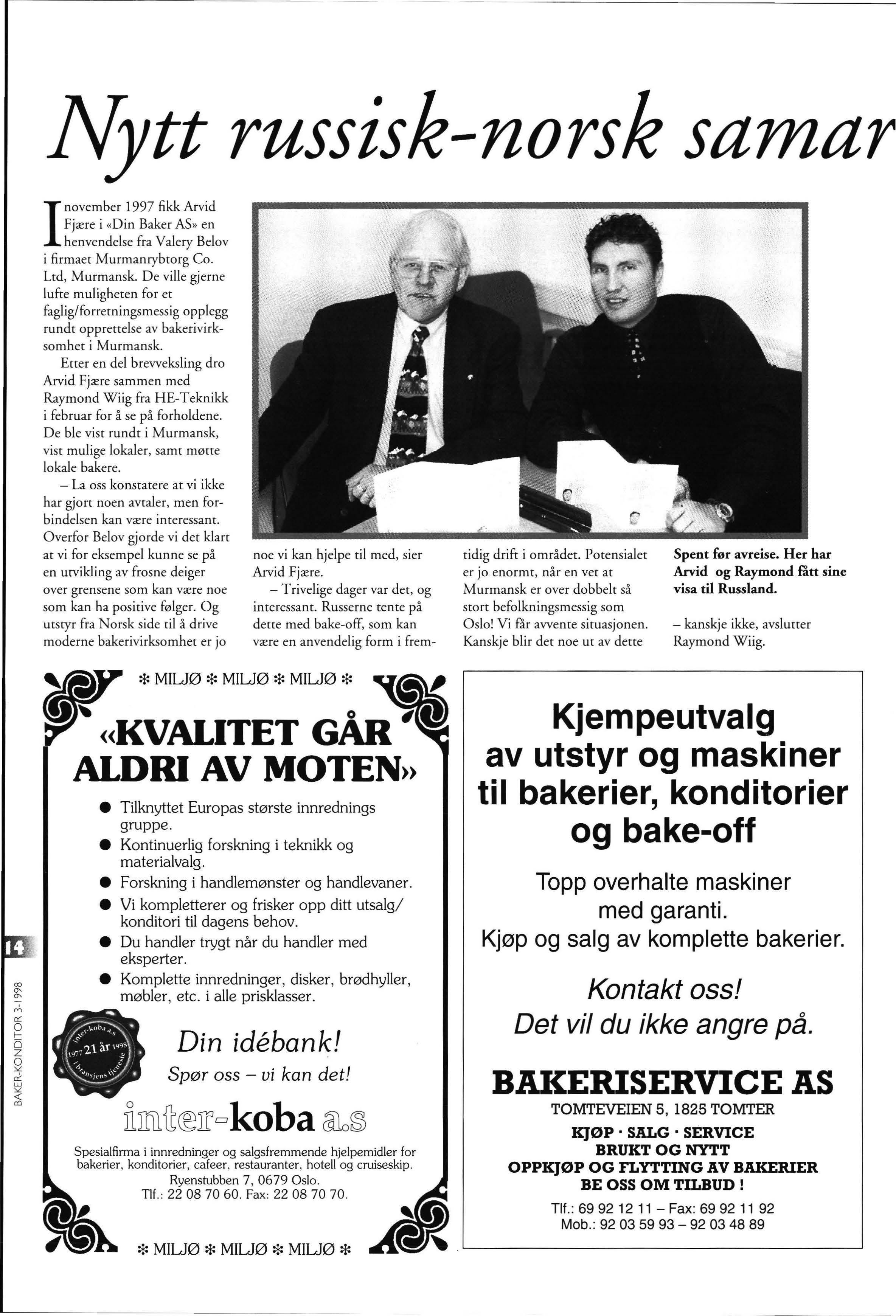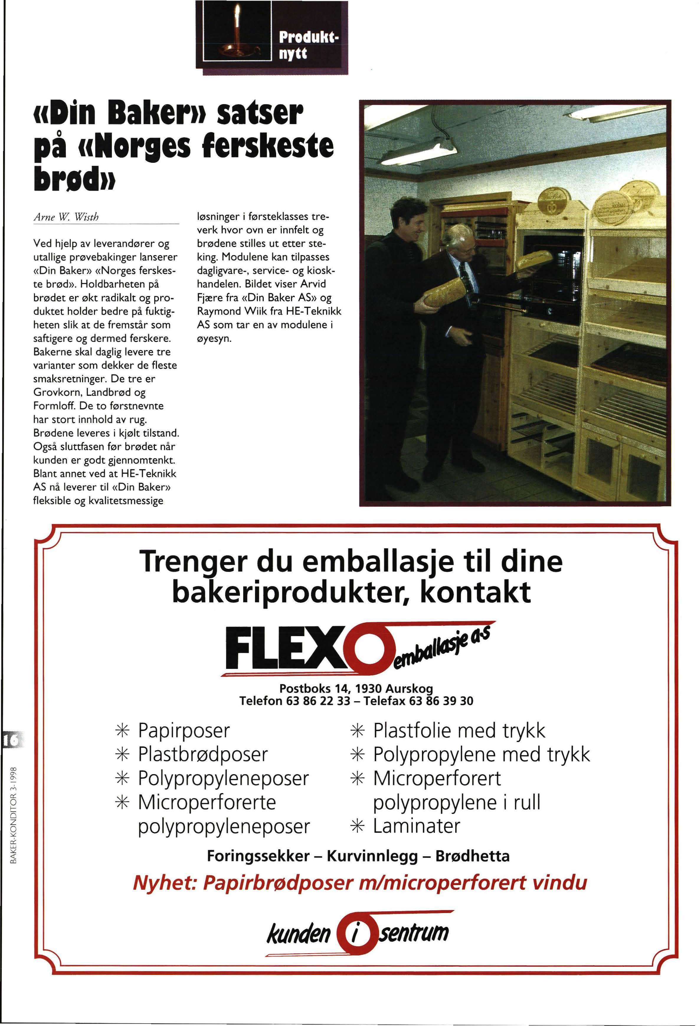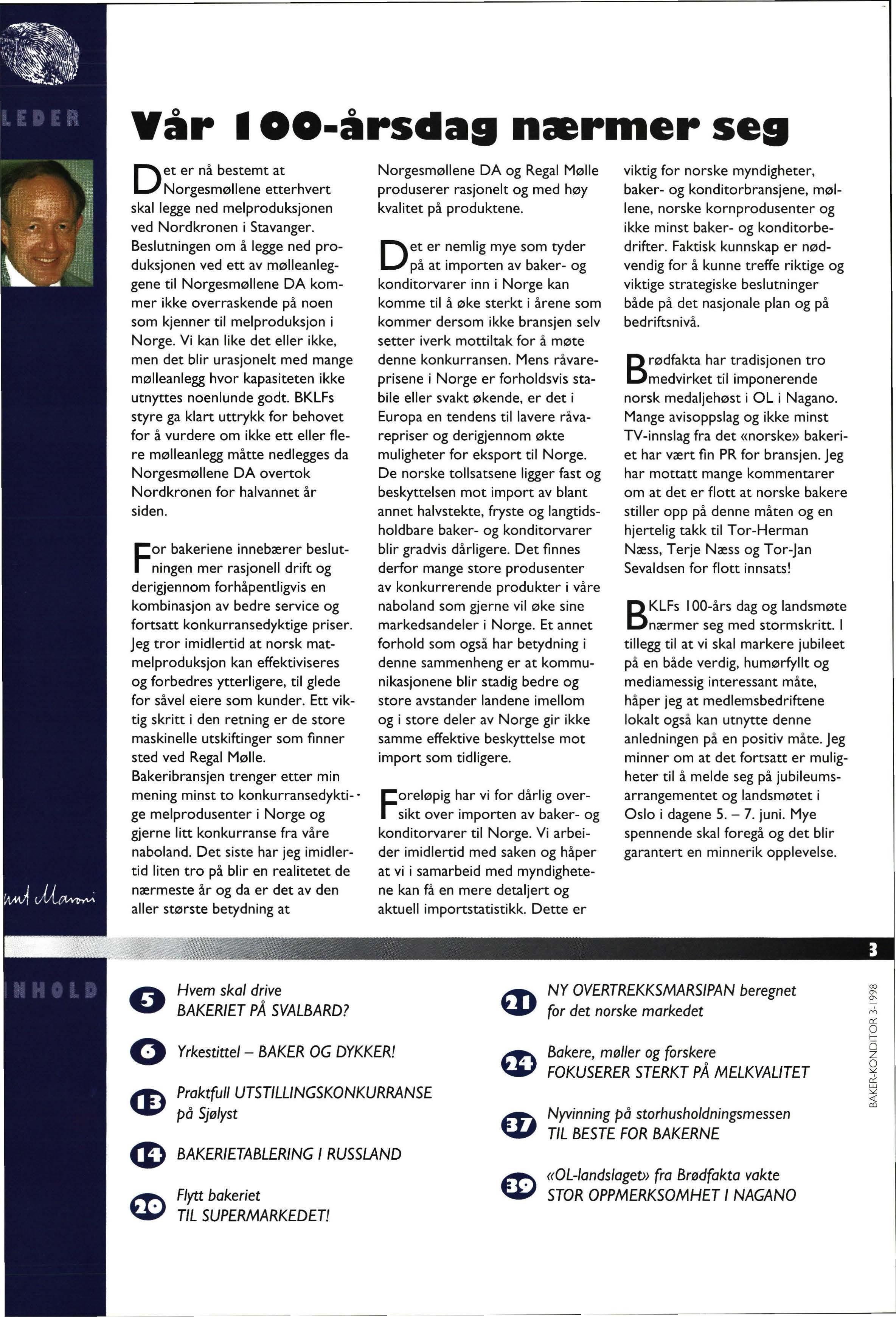 For bakeriene innebærer beslutningen mer rasjonell drift og derigjennom forhåpentligvis en kombinasjon av bedre service og fortsatt konkurransedyktige priser Jeg tror imidlertid at norsk matmelproduksjon kan effektiviseres og forbedres ytterligere, til glede for såvel eiere som kunder. Ett viktig skritt i den retning er de store maskinelle utskiftinger som finner sted ved Regal Mølle. Bakeribransjen trenger etter min mening minst to konkurransedykti- · ge melprodusenter i Norge og gjerne litt konkurranse fra våre naboland. Det siste har jeg imidlertid liten tro på blir en realitetet de nærmeste år og da er det av den aller største betydning at