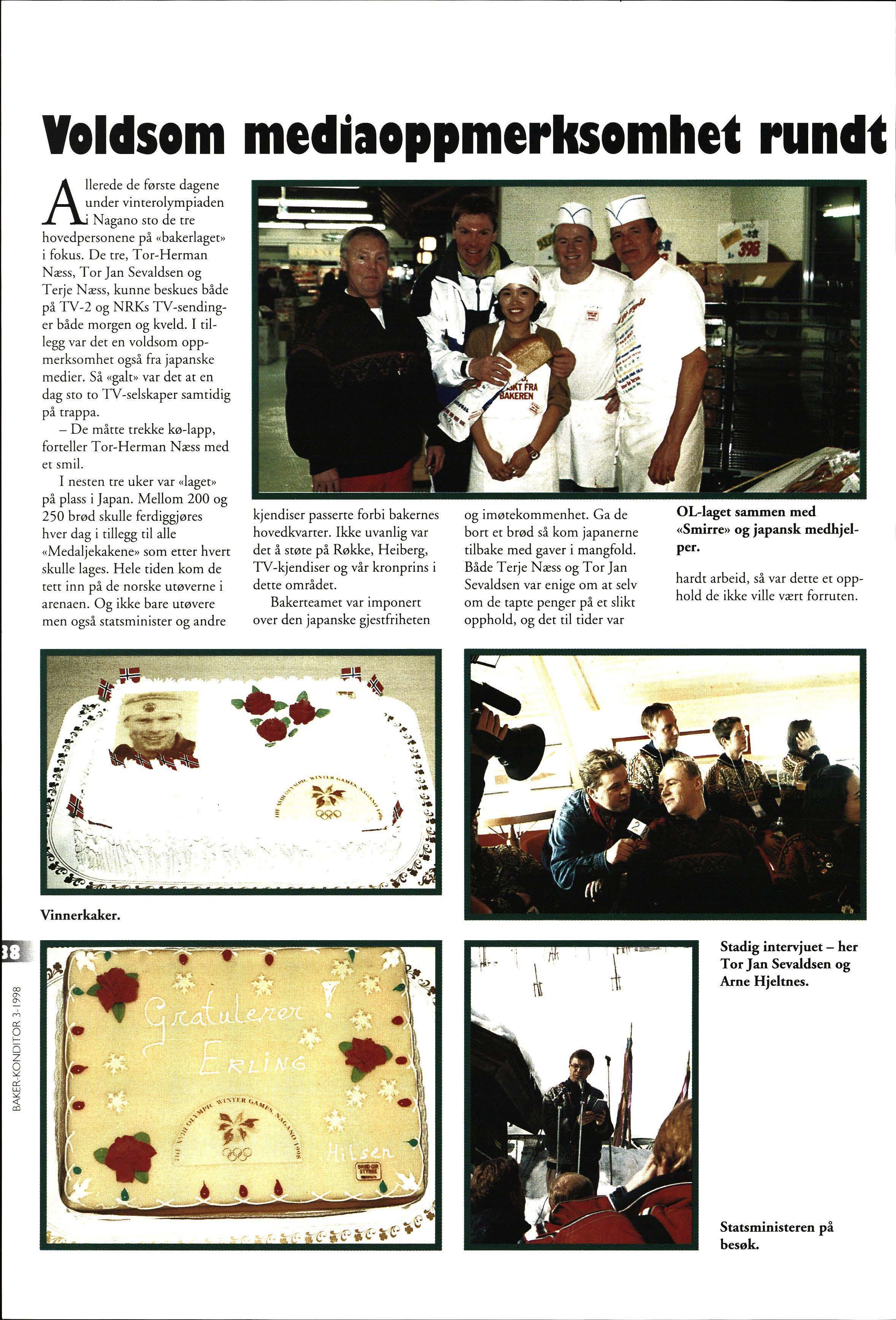 lerede de første dagene under vinterolympiaden Nagano sto de tre hovedpersonene på «bakerlaget» i fokus. De tre, Tor-Herman Næss, Tor Jan Sevaldsen og Terje Næss, kunne beskues både på TV-2 og NRKs TV-sendinger både morgen og kveld. I tillegg var det en voldsom oppmerksomhet også fra japanske medier. Så «gale» var det at en dag sto ro TV-selskaper samtidig på trappa.