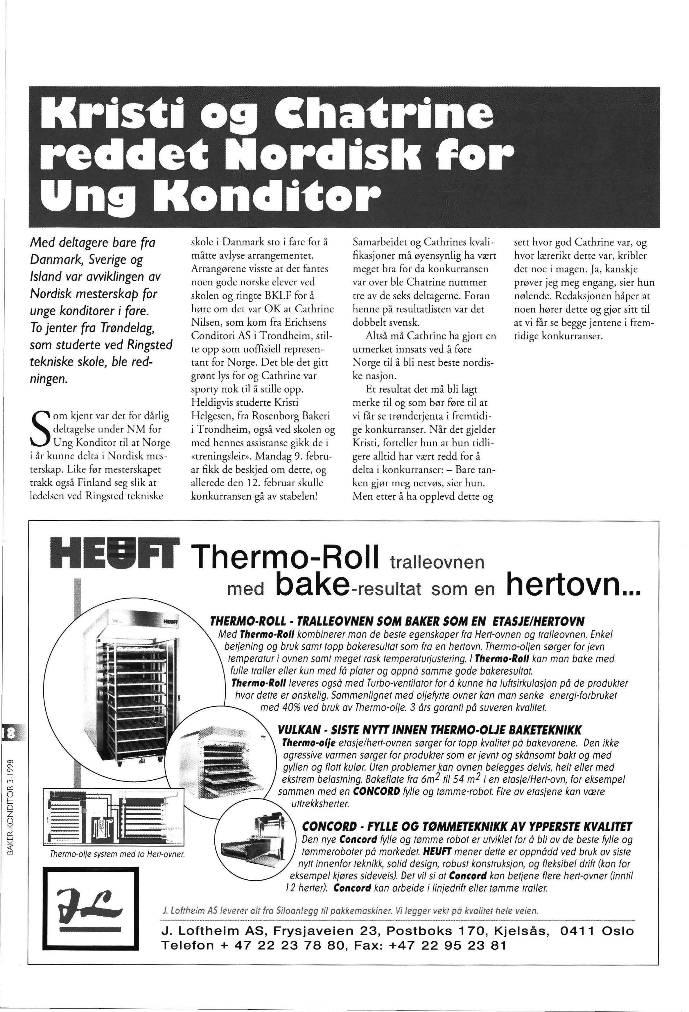 Firmaet Heuft har produsert ovner i over I00 år og Thermo-olje utstyr siden 1968 Fabrikken er lokalisert mellom Køln og Bonn og her i landet forhandler firmaet J. Loftheim AS ovnene derfra. På IBA-messen vil du kunne se hvordan man med ThermoRoll kombinerer de beste egenskaper fra Hert-ovnen og