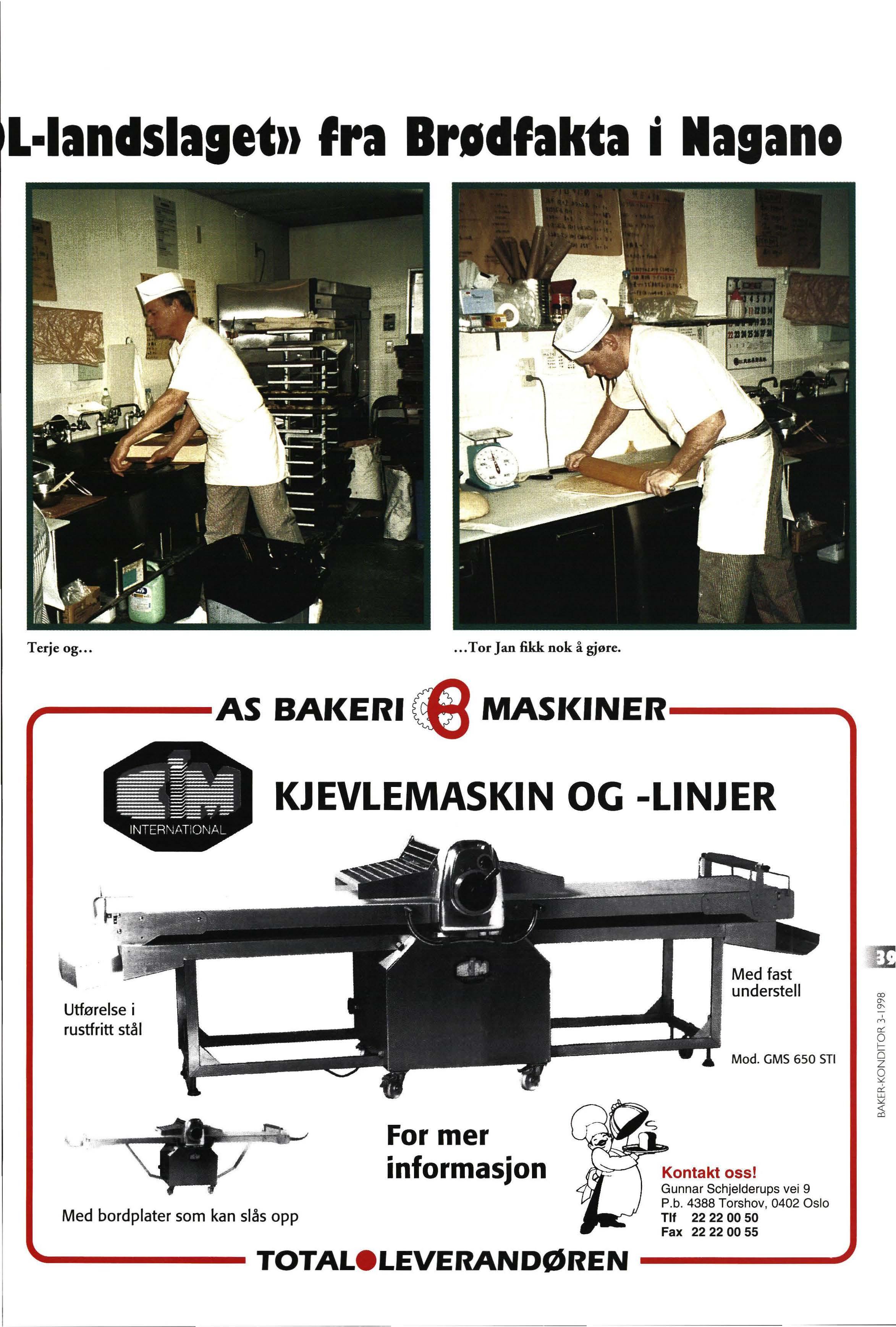 Brødfakta har tradisjonen tro medvirket til imponerende norsk medaljehøst i OL i Nagano. Mange avisoppslag og ikke minst TV-innslag fra det «norske» bakeriet har vært fin PR for bransjen. Jeg har mottatt mange kommentarer om at det er flott at norske bakere stiller opp på denne måten og en hjertelig takk til Tor-Herman Næss, Terje Næss og Tor-Jan Sevaldsen for flott innsats!