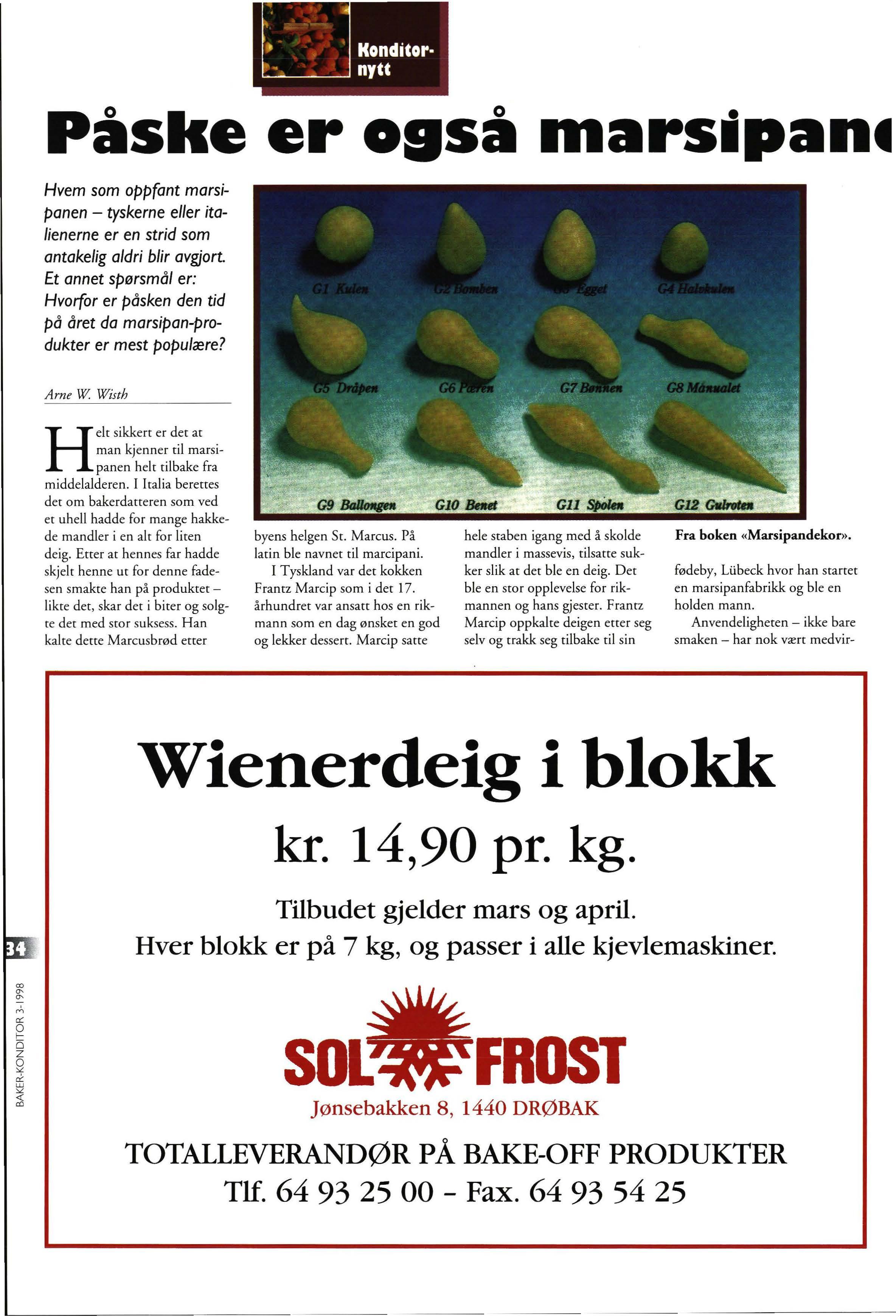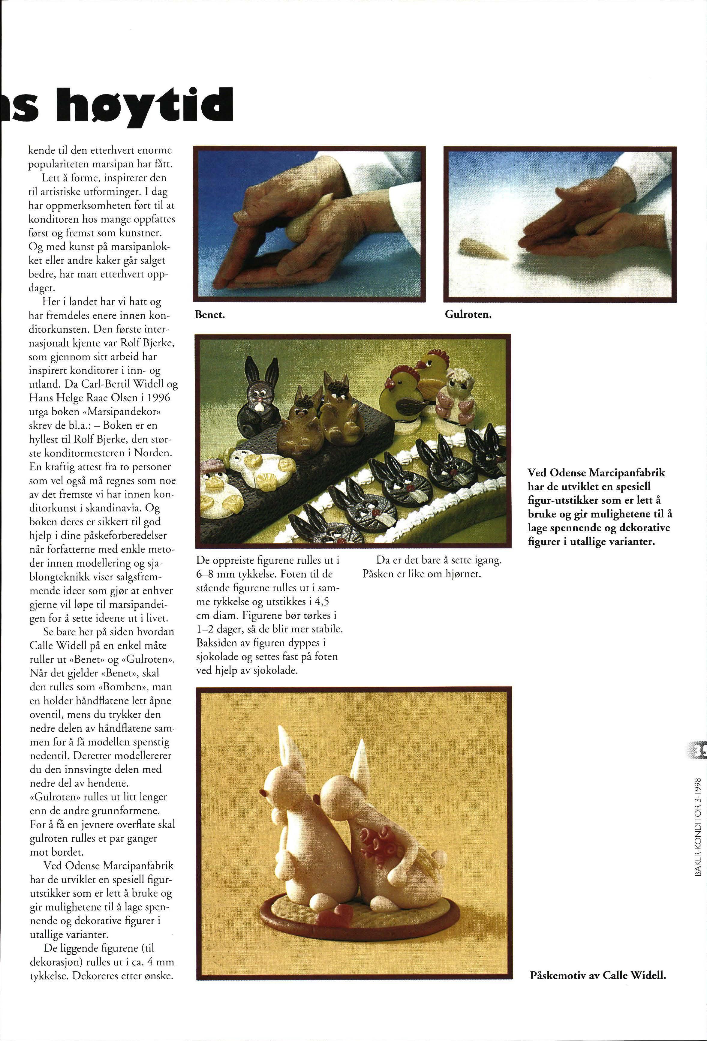 Her i landet har vi hatt og har fremdeles enere innen konditorkunsten. Den første internasjonalt kjente var Rolf Bjerke, som gjennom sitt arbeid har inspirert konditorer i inn- og utland. Da Carl-Bertil Widell og Hans Helge Raae Olsen i 1996 utga boken «Marsipandekor» skrev de bl.a.: - Boken er en hyllest til Rolf Bjerke, den største konditormesteren i Norden. En kraftig attest fra to personer som vel også må regnes som noe av det fremste vi har innen konditorkunst i skandinavia. Og boken deres er sikkert til god hjelp i dine påskeforberedelser når forfatterne med enkle metoder innen modellering og sjablongteknikk viser salgsfremmende ideer som gjør at enhver gjerne vil løpe til marsipandeigen for å sette ideene ut i livet.