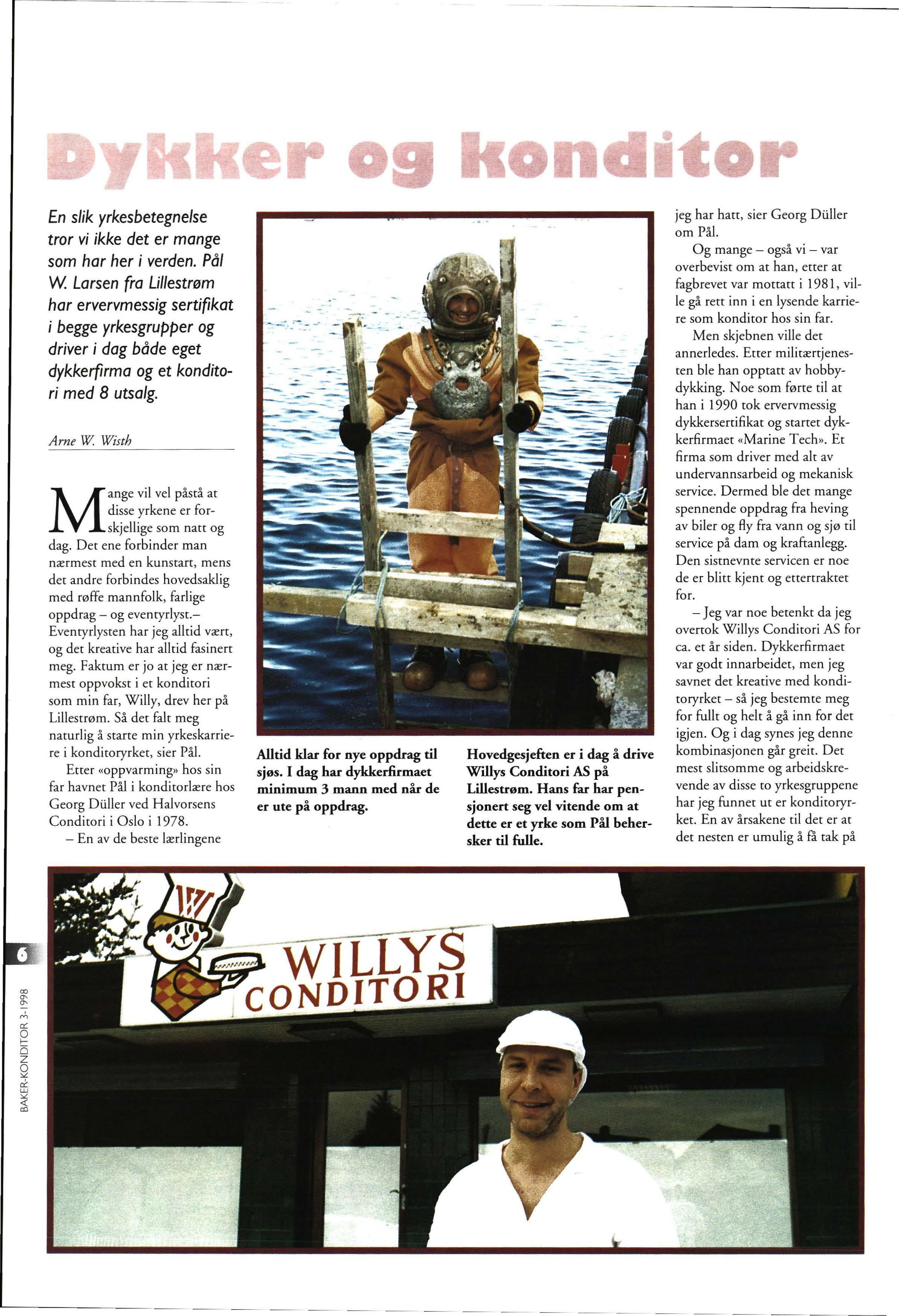 tror vi ikke det er mange som har her i verden. Pål W Larsen fra Lillestrøm har ervervmessig sertifikat i begge yrkesgrupper og driver i dag både eget dykkerfirma og et konditori med 8 utsalg.