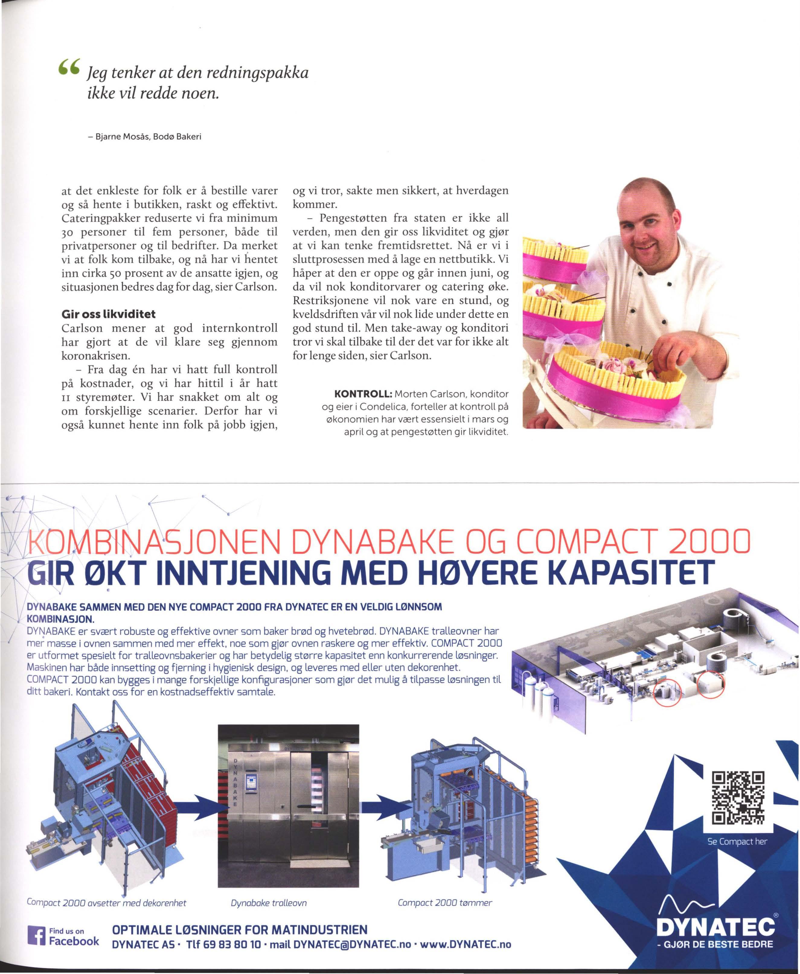 Sommeren kan gi en ny start Baker- og konditorbransjen har vært, og er fortsatt, hardt rammet av koronakrisen. Men når regnskapet etter hvert skal gjøres opp, er det ikke sikkert at det er baker- og konditorbransjen som ble verst rammet. Det er spådd en hale av ringvirkninger i bygg- og anleggsbransjen, i oljenæringen og i andre bransjer. Det betyr høyere arbeidsledighet over tid, og at folk flest kan få dårligere råd. I slike tider viser det seg ofte at vår bransje kommer godt ut. I stedet for å gå på restaurant, kjøper heller folk med seg noe godt fra bakeren og konditoriet og spiser hjemme. Juni blir kanskje årets tøffeste måned for mange bedrifter. Feriepengeutbetalinger, utsatt merverdiavgift og ordinær merverdiavgift er spådd å ta knekken på mange. Vi får håpe at de fleste greier seg, og at en god sommer med nordmenn med god kjøpekraft ferierende i eget land kan veie opp for noe av det. Og, ikke minst, at høsten blir av en mer normal type.
