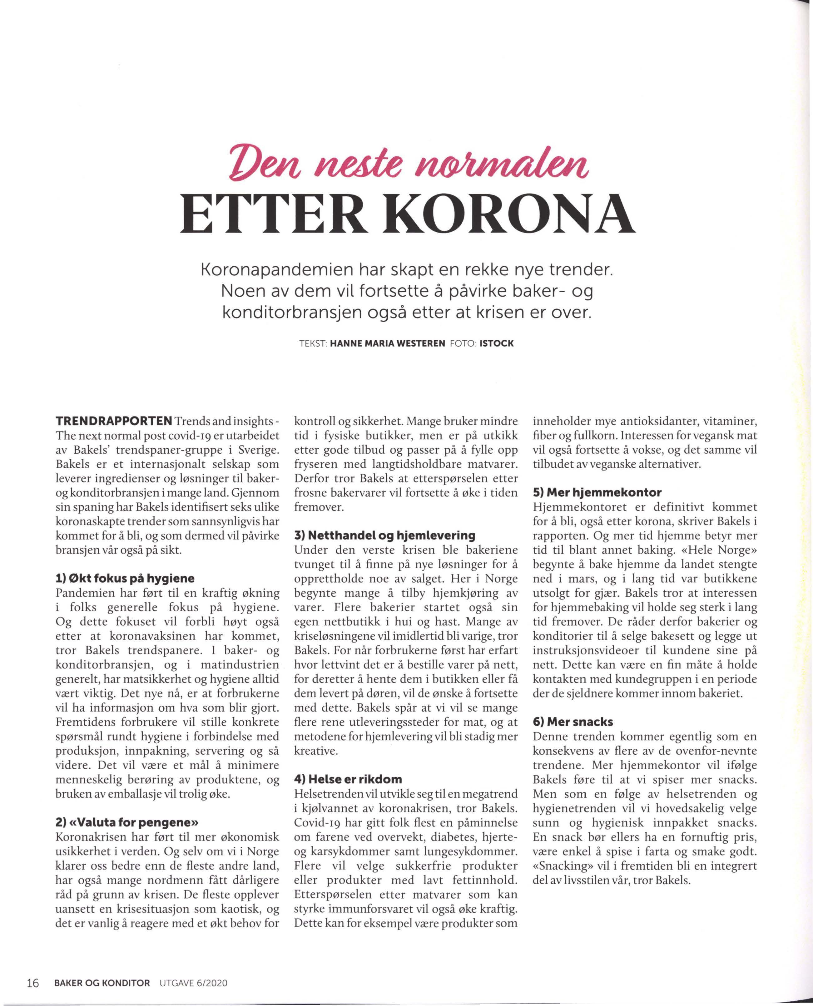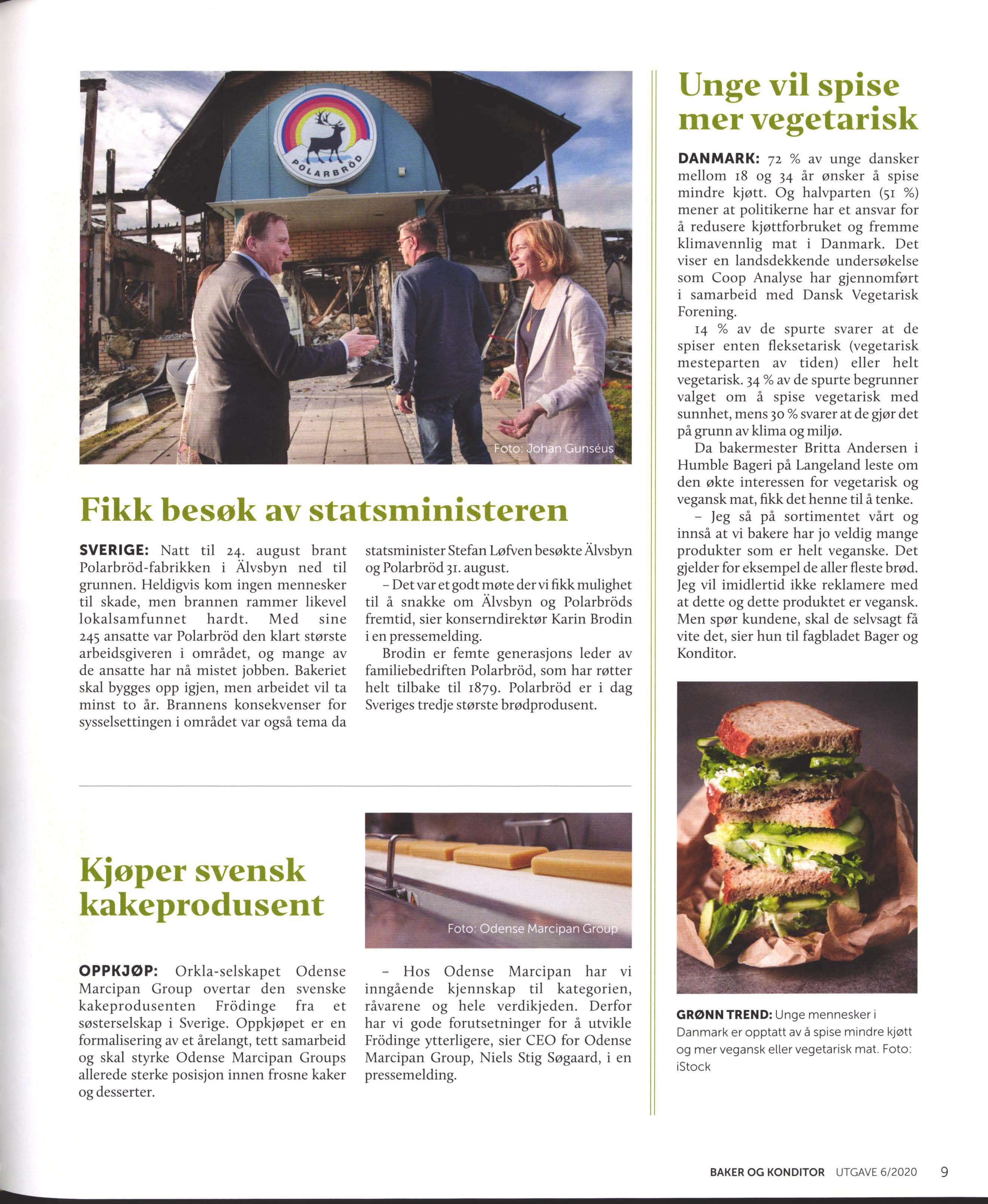 SMÅNYTT Sm å n y heter om messer og konkurran se r 5 Sm å nyheter fra Norge 6 LEDER BKLF Bran sjen er bærekraftig 8 SMÅNYTT Sm å n y hete r fra vå re nab o land 9 ÅRETS BAKERI Snart kåres vinneren 10 BAKER NORDBY Nytt ut salg o g kon se pt 12 TRENDRAPPORT Den n y e normalen .. .. .... ... .... .... ....... ........ .... ... .... ... 16 STORE OG SMÅ For skjellene blir st ø rre 18 SAVVIE Ny app for bak e rier 2 0 RETURORDNINGEN Brød svinn i dagligvarehandelen 22 EMBALLASJE Fler e bakerv arer i pla st 26 BAKERLAN