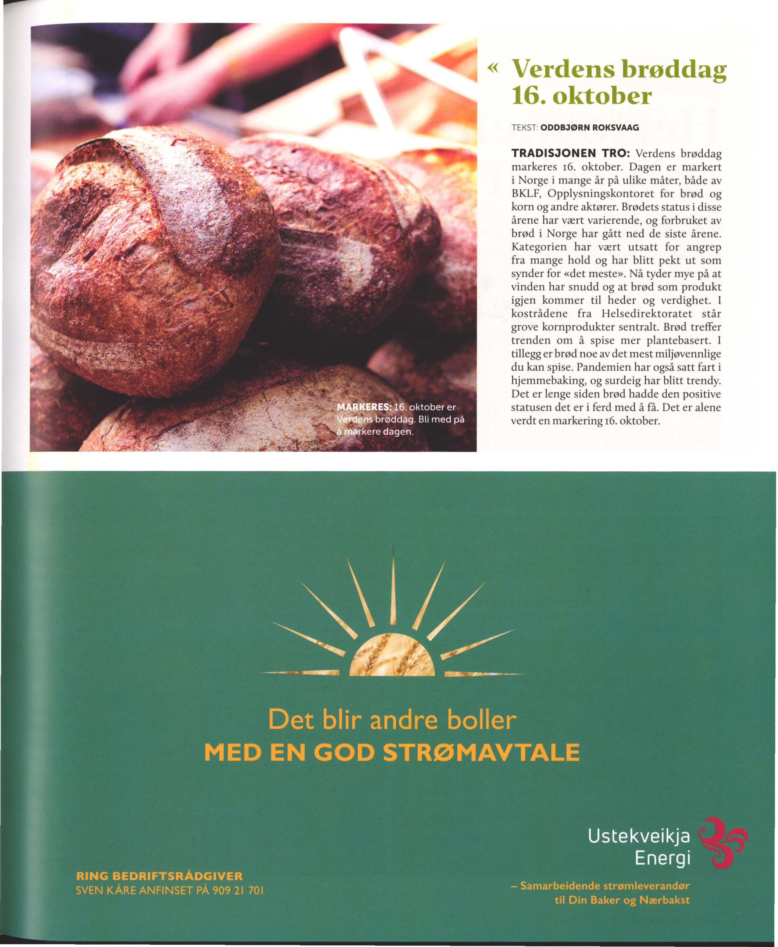 Fortsatt en jobb å gjøre Selv om utgangspunktet for vår bransje er svært bra, er det fortsatt en jobb å gjøre for de fleste Ikke minst knyttet til matsvinn. Dette har kommet skikkelig på dagsorden de siste årene og vil øke i styrke fremover. Returordningen med fri retur i dag ligvarehande len er en av vår bransjes minst bærekraftige løsninger. Det ser ut til at vi fortsatt må leve med denne ordningen en stund til. Det er imidlertid å håpe at det b lir funnet andre løsninger slik at det store svinnet denne ordningen fører til, kan reduseres. Til syvende og sist må forbruker finne seg i et redusert utvalg av ferske brød og bakervarer på slutten av dagen og på kveldstid.