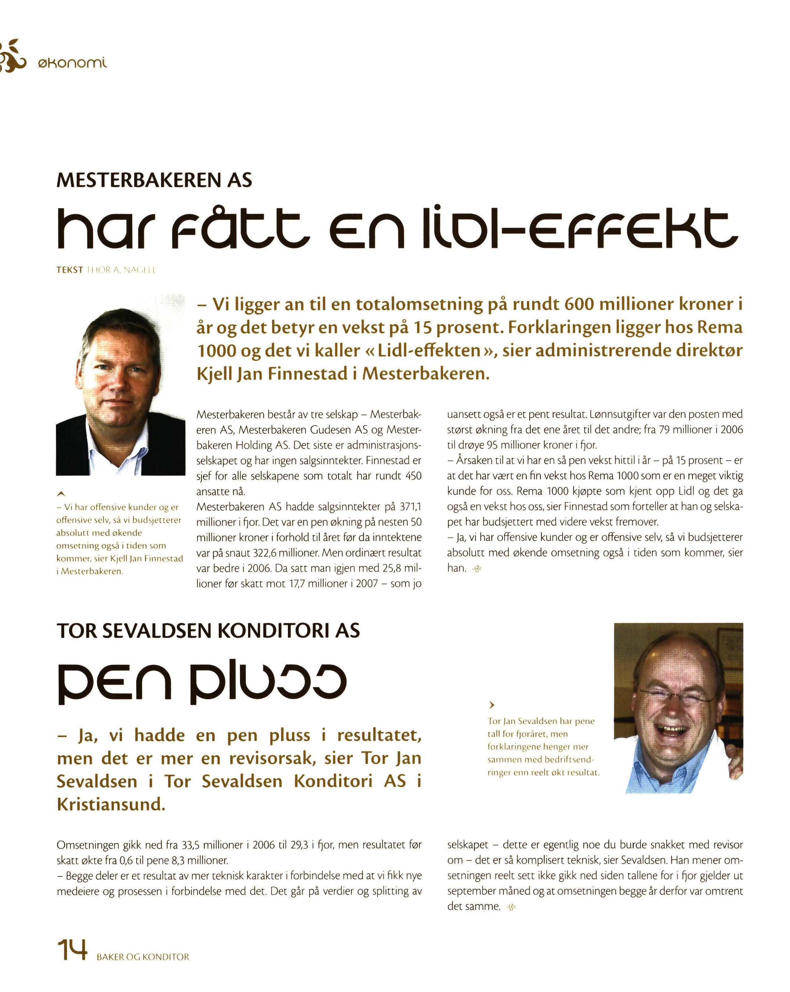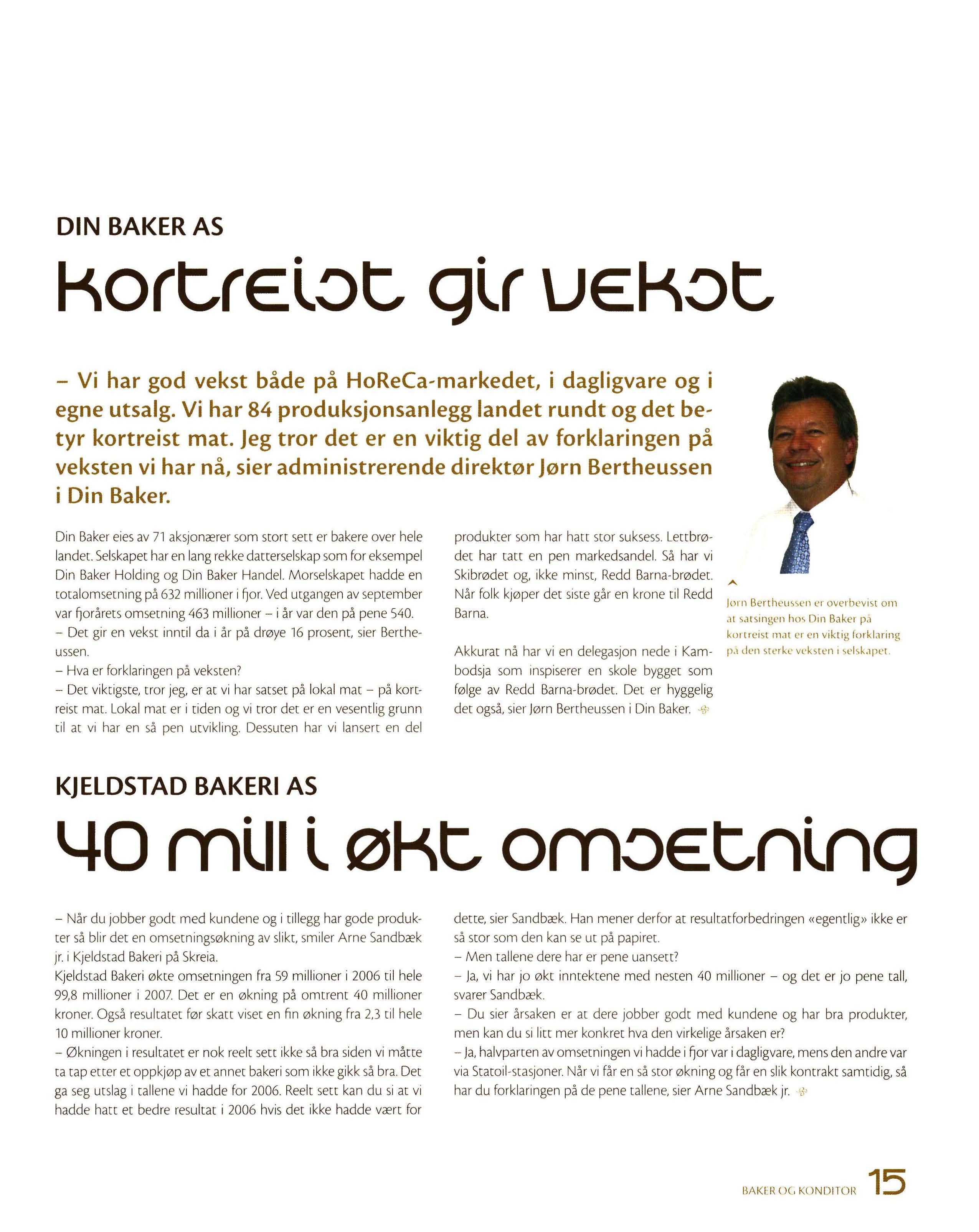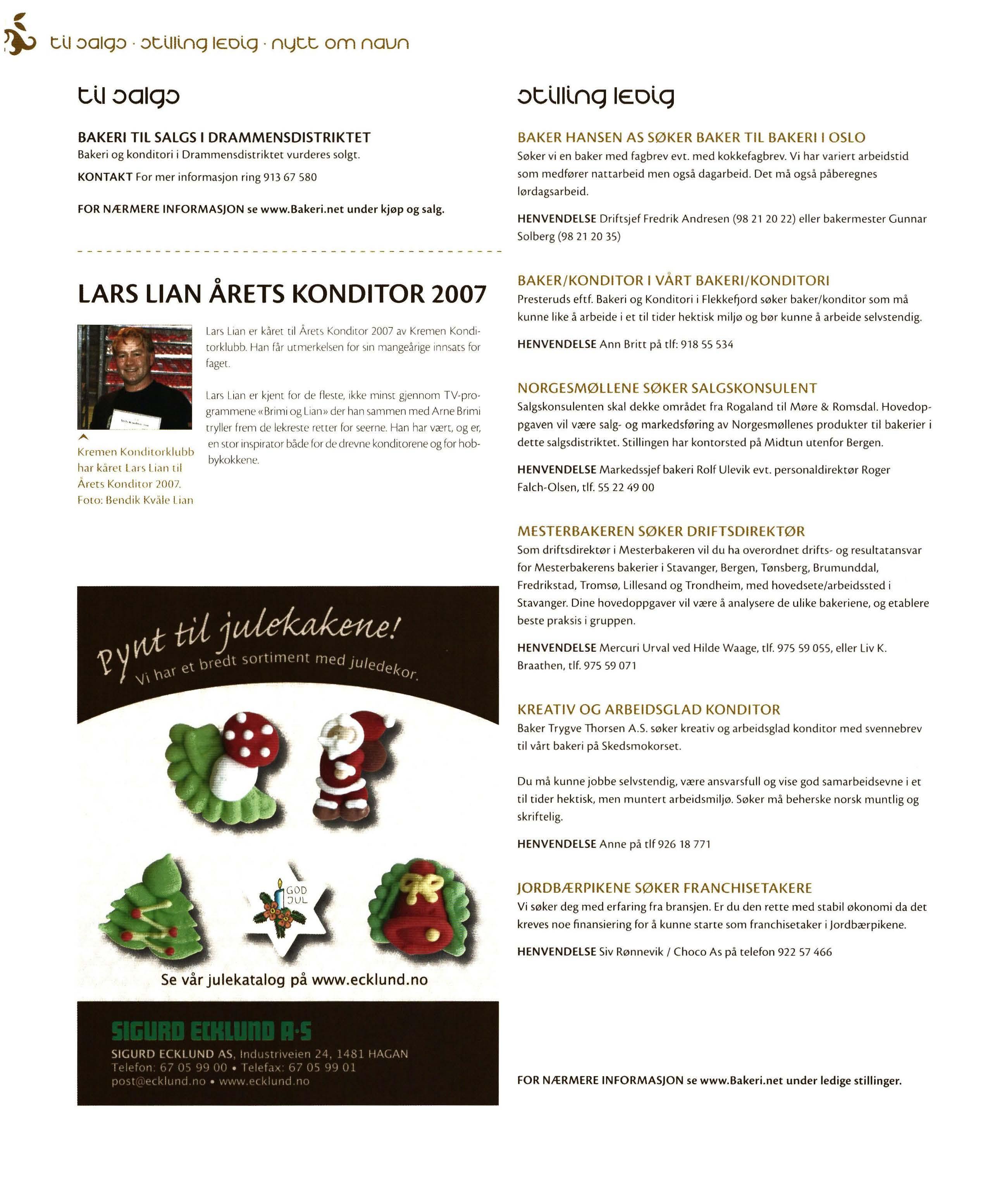 DENNE GANG presenterer vi regn skap stall fra baker- og kondi tor br ansien for 2007. Det gjør vi ikk e for å tilfr edssti ll e fo lks nysgjerrighet, men for ac det ska l være mulig å se egne ta ll og prescasion er i forho ld til sammenl ignbare bedr ift e r. Det har vi tenkt å gjøre hver høst. Vi håper dere alle ser nytteverdien og bruker det akt ivt.