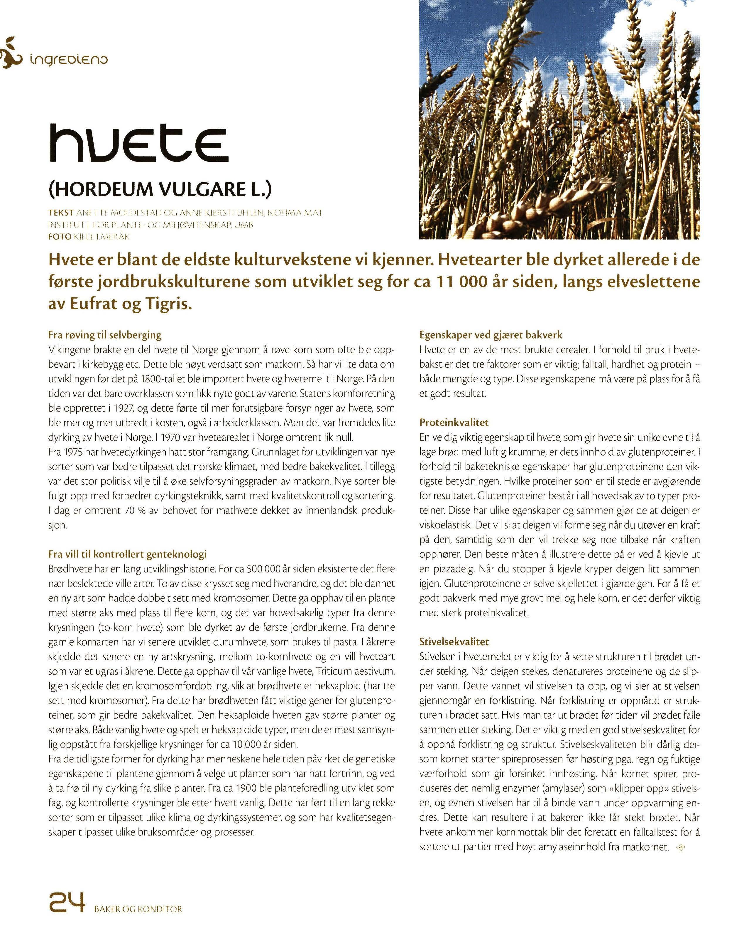 Opplysningskontoret for brød Hvete er blant de eldste kultur- Elin Erdal lJåstad, Stig Magne På Verdens Brøddag i Oslo kunne og korn har fått utarbeidet en vekstene vi kjenner. Kornarren Torve og Geir Olsen serverer oss fo lk få nærmere kjennskap t il rappo r t som forteller om det ble dyrket allerede i de første sine spennende resepter på blant brød i all e var iante r Årets Grovis norske fo l ks brødvane r. Resulta- jordbrukskulturene som utvik let annet Ju lebrød og juledessert til og Årets Brød ble også kåret tet er glede lig lesning seg for ca 11 000 år siden. inspirasjon i disse førju lst ider. un der tilstellingen.