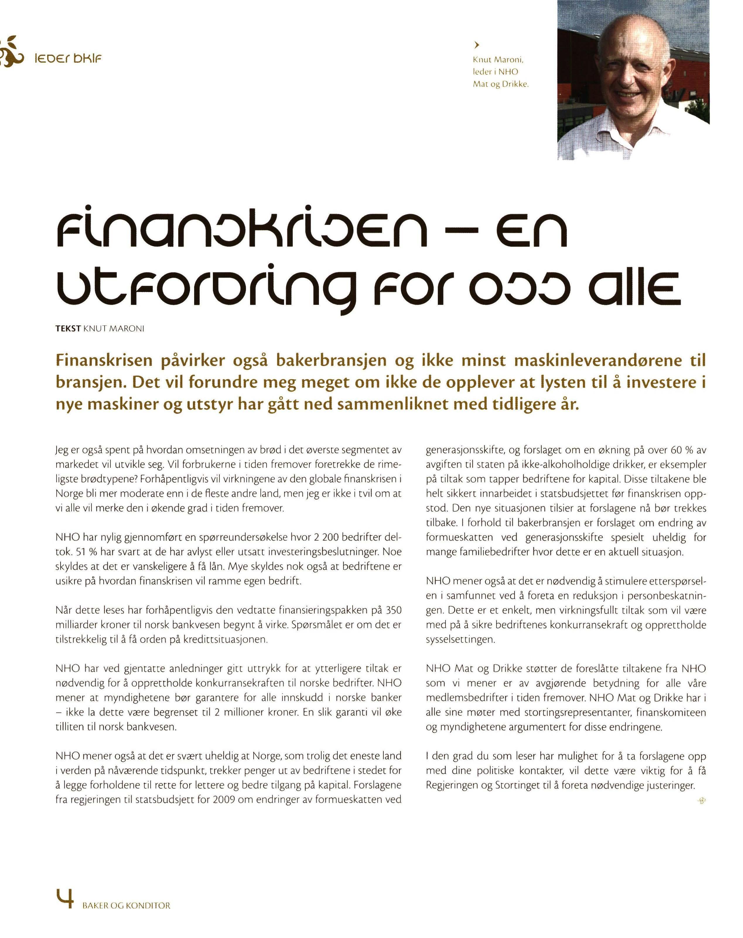 Finanskrisen påvirker også bakerbransjen og ikke minst maskinleverandørene til bransjen. Det vil forundre meg meget om ikke de opplever at lysten til å investere i nye maskiner og utstyr har gått ned sammenliknet med tidligere år.