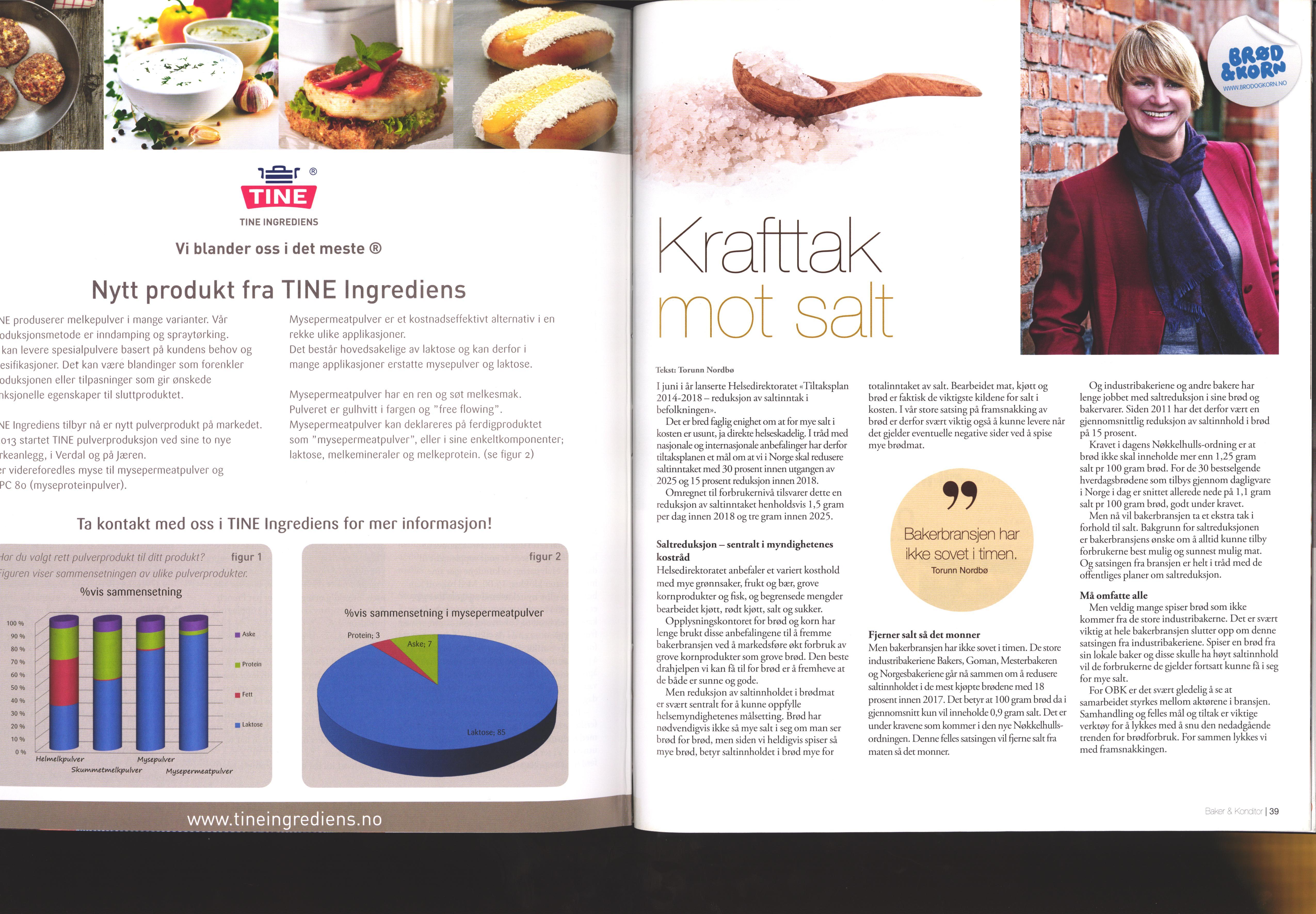 Men ni' vil bakerbransjen ta et ekstra tak i forhold til salt. Balgrunn for saltreduks.ionen er bakerbransjens onske om i alltid kunne tilby forbrukerne best mulig og sunnest mulig mat. Og satsingen fra bransjen er helt i trid med de offentliges planer om saltreduksjon.