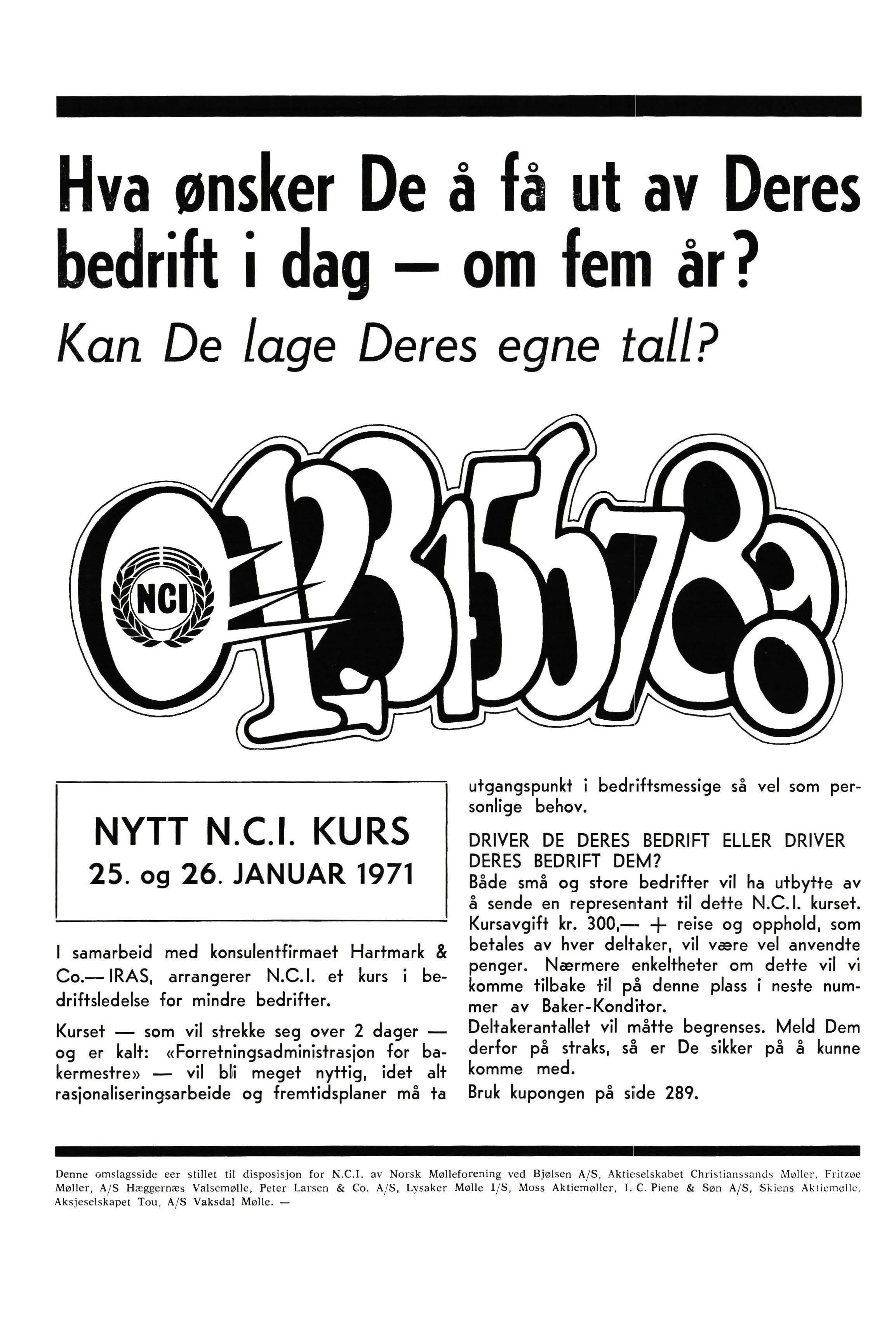Som alle nå vet, har B.K.L.F. i mange år arbeidet for å få etablert et konsultativt organ for nær ingen. Mange hindringer har dukket opp og måttet overvinnes før etableringen av NCI har kunnet gjennomføres. I og med etableringen er de første hindringer overvunnei', men dei' sier seg selv at vi først nå kan begynne oppbyggingen av instituttei , og når dette forhåpentligvis er gjort i løpet av inneværende år, kan vi begynne arbeidet ute i marken hvor nye hindringer vil dukke opp Vi må imidlertid også overvinne disse fordi etableringen av et konsulentorgan også i disse bransjer er så åpenbart riktig og fornu#ig. Vi hitsetter NCl's formålsparagrafs første avsnitt som lyder slik :