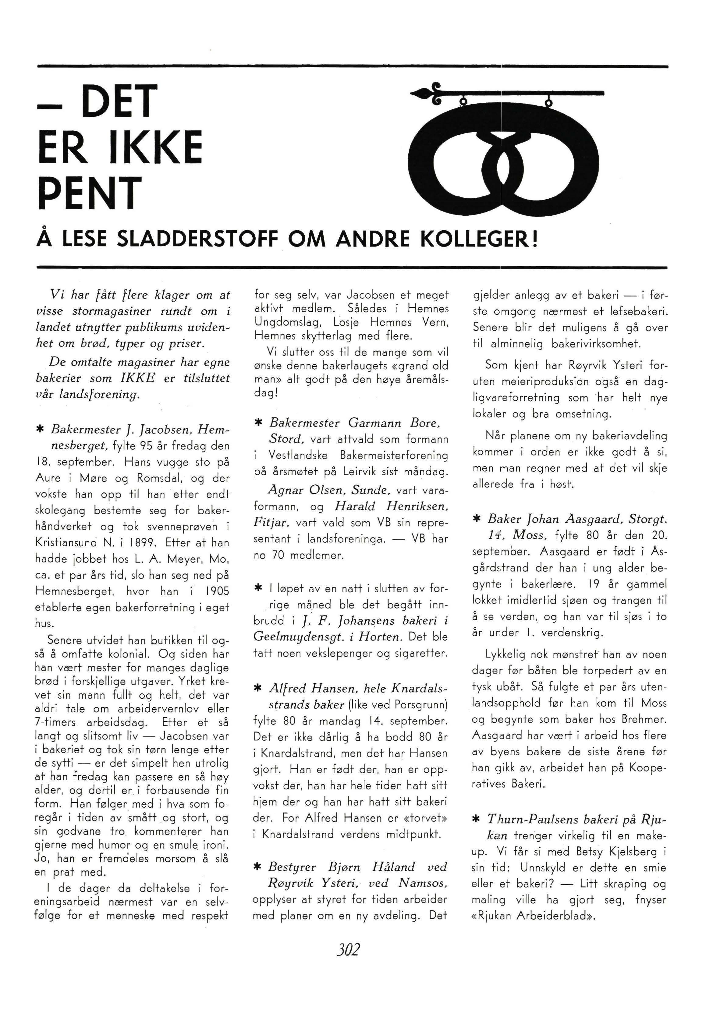* Bakermester J Jacobsen , Hemnesberget, fylte 95 år fredag den 18. september . Hans vugge sto på Aure i Møre og Romsdal, og der vok ste han opp til han etter endt s kolegang be stemte seg for bakerhånd verket og t o k svennepr øv en i Kri stiansund N i 1899. Etter at han hadde iobbet ho s L. A. Meyer, Mo, ca et par år s tid, slo han seg ned på Hemnesberget, hvor han i 1905 etablerte egen bakerforretn ing i eget hus