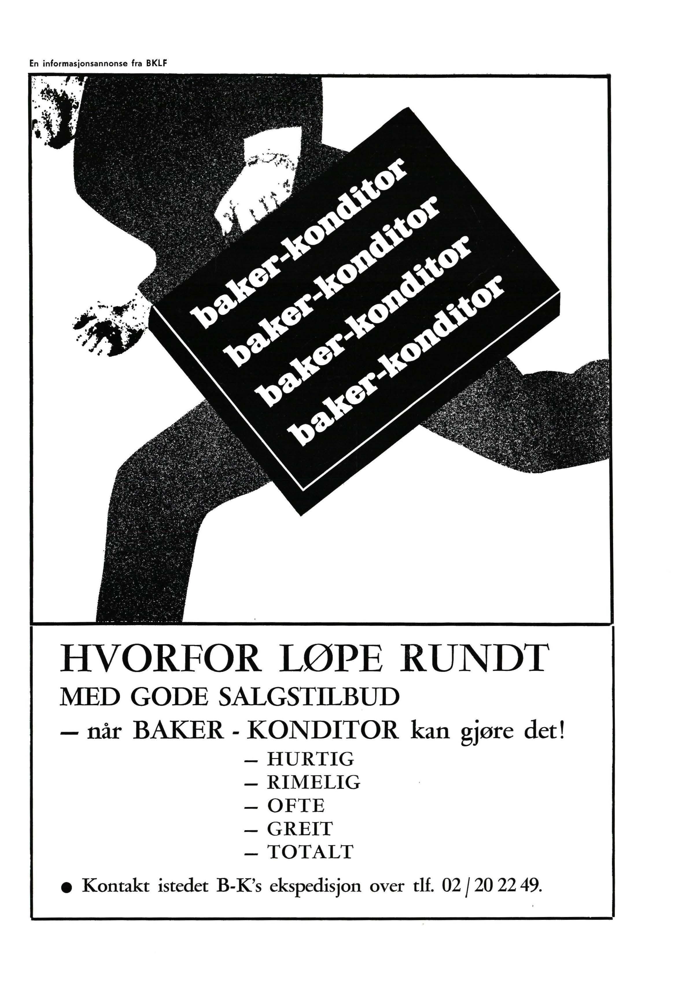 BKLF's sekretariat / Baker - Konditor : St. Olavsgt. 28 VII, Oslo I. Tlf 20 22 49 - 20 23 25.