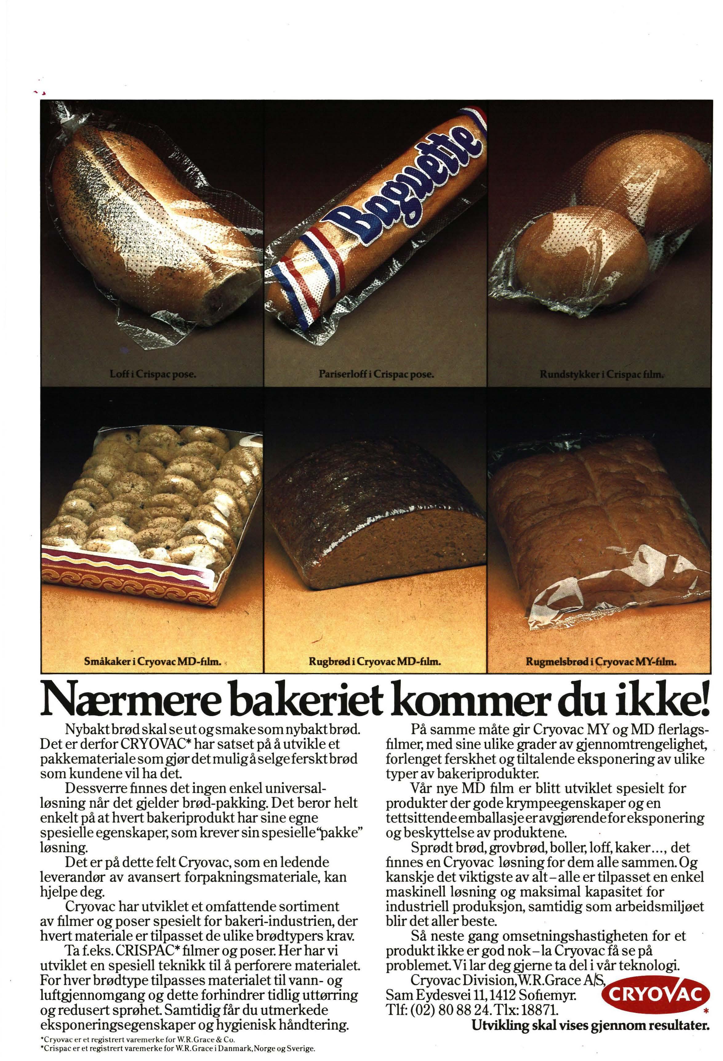Så neste gang omsetningshastigheten for et produkt ikke er god nok-la Cryovac få se på problemet Vi lar deg gjeme ta del i vår teknologi. Cryovac Division,W.R.Grace Sam Eydesvei 11, 1412 Sofiemyr. q tff•trj Tlf: (02) 80 88 24. Tlx: 18871. * Utvikling skal vises gjennom resultater.
