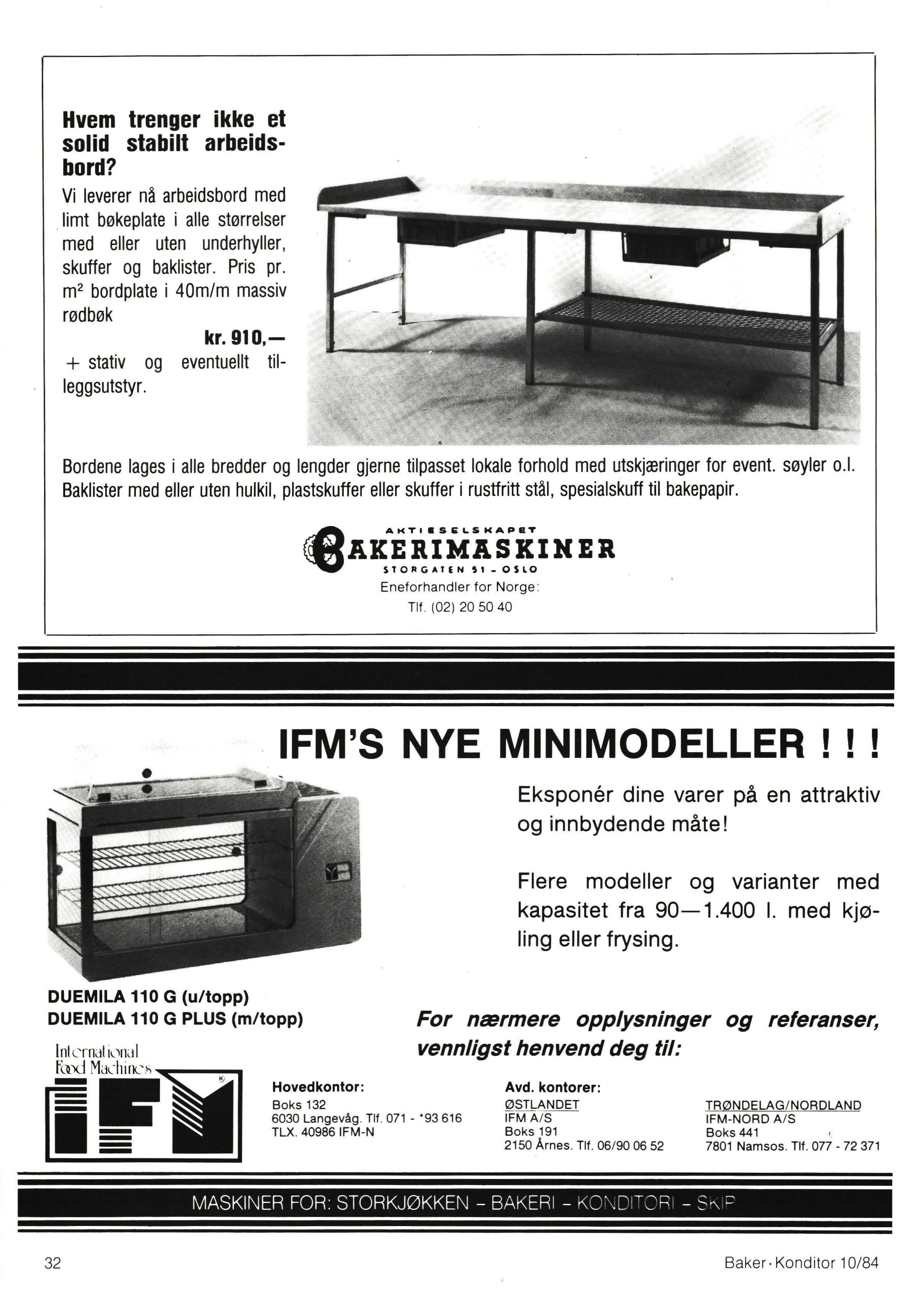 lnterfood 84 i Gøteborg , den 23 .-26 . oktober 1984 og Jubileums FBK i Bern , Sveits , den 27 -31 januar 1985.