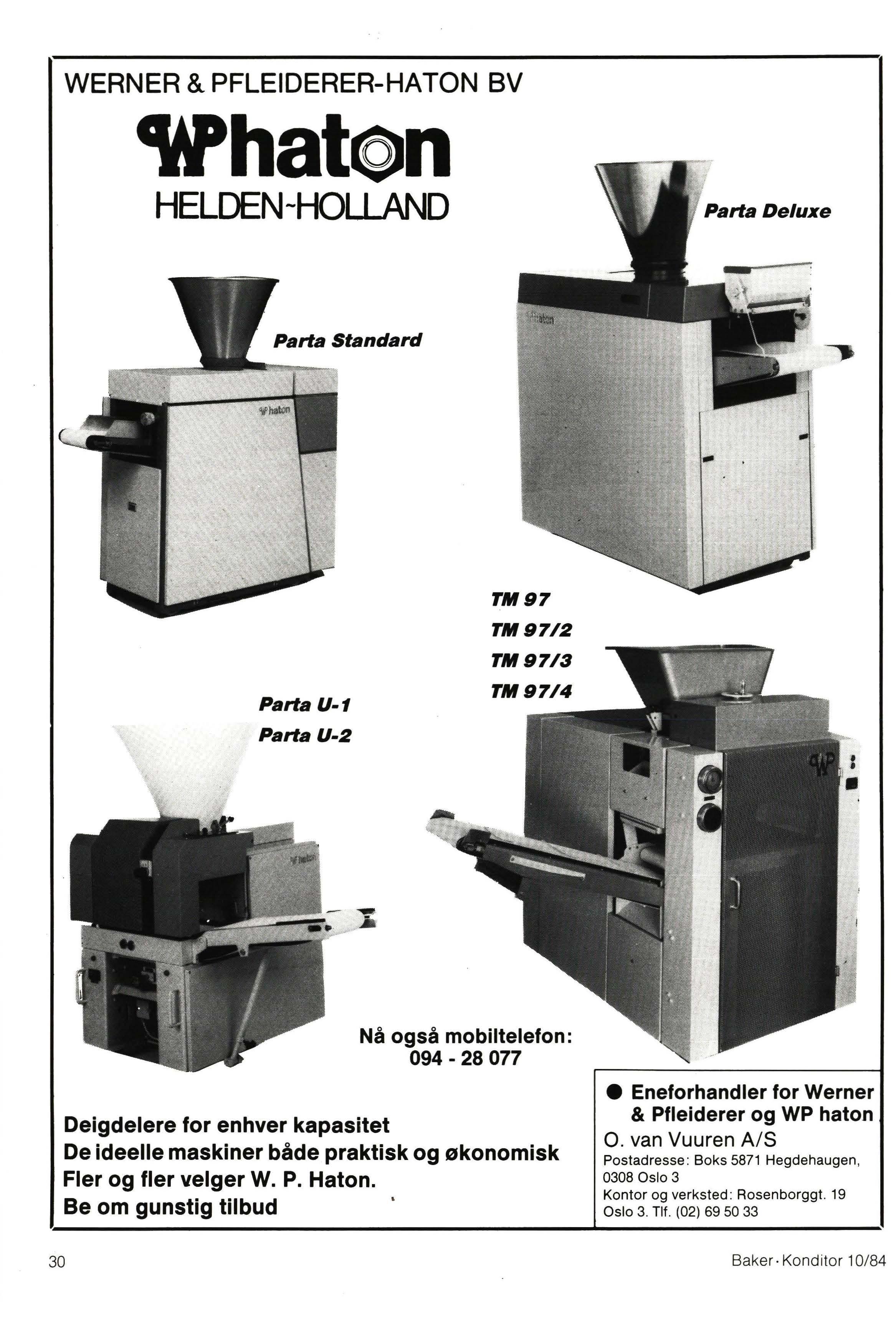Beha storkjk./bysseovner, Atir li vaskemaskin , Glimåkra deigdeler (ubrukt), W&P rundvirker (ubrukt). d iv kjk./ bakerimaskiner