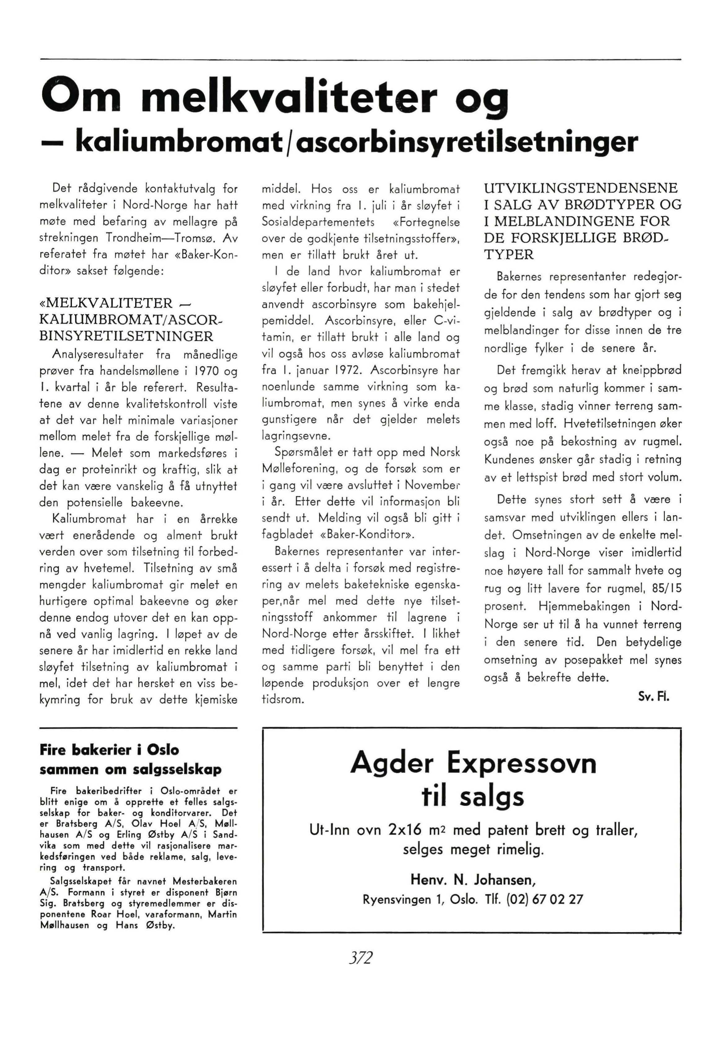 Bakerne s representanter var intere ss ert i å delta i forsøk med regi strering av melets ba ketekniske egen sk aper,når mel med dette nye tilsetningsstoff ankommer til lagrene i Nord-Norge etter årsskiftet. I likhet med tidligere forsø k, vil mel fra ett og samme parti bli benyttet i den løpende produksjon o ver et lengre tidsrom.