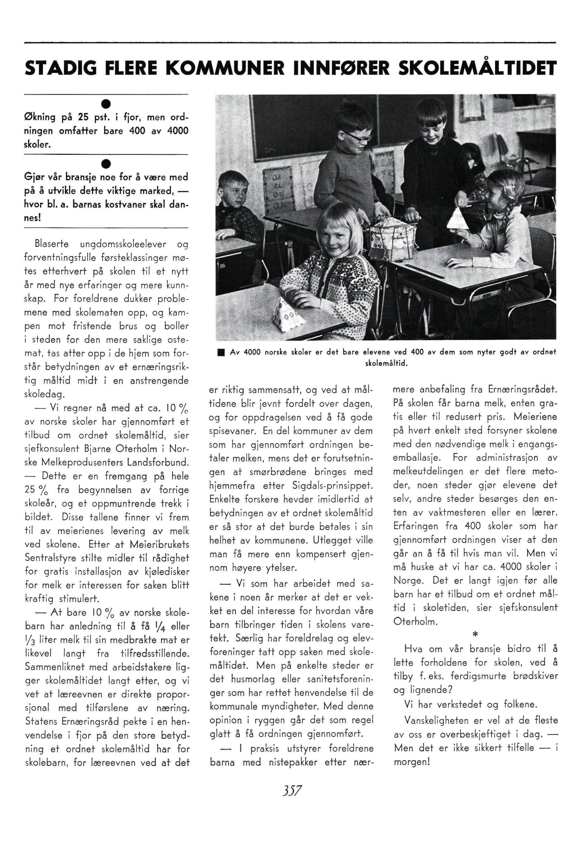 Erfaringene fra inn- og utland viser klart at ved slik totalplanlegging er det utrolig hva som kan innspares både i pakketid, lagerhold av pakningsvarianter og forenkling av lukke- og åpningsmetoder for de aktuelle pakningers vedkommende. Han nevner videre at selvom forholdene ved de mange bakerier kan være forskjellig, vil det bety svært meget både økonomisk og tidsmessig, om slik planlegging i første omgang kan skje på bransjehold.
