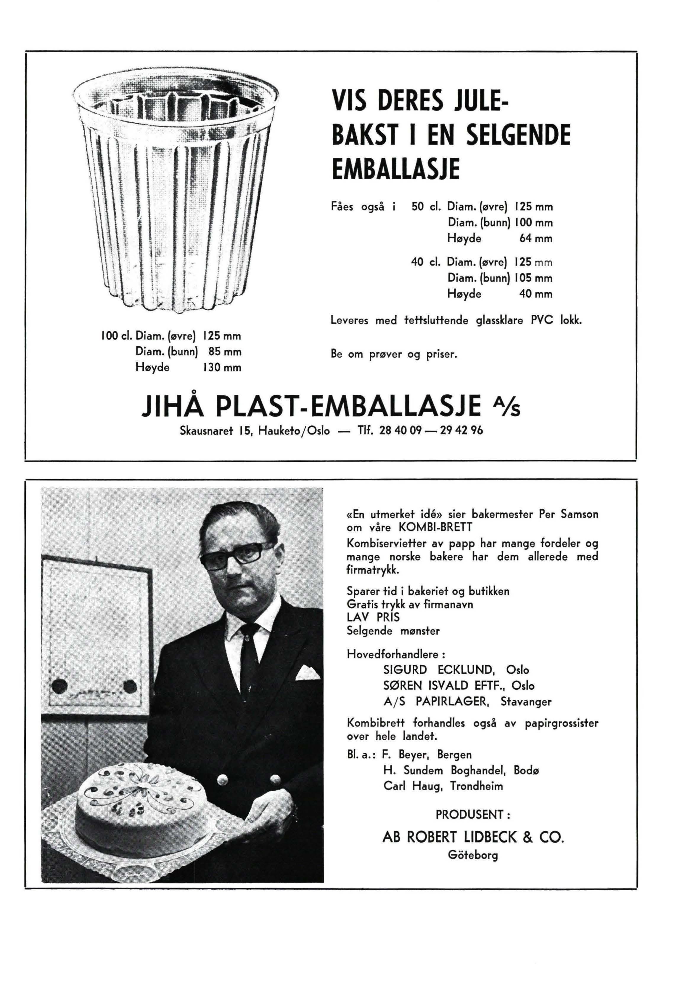 I sin lederartikkel i «Baker-Konditor» nr I O b, «Emballasjerapport, til bakere og konditorer» , skriver produktsjef Inge H ø yvik om «helheten i våre opplegg». Han nevner bl. a.: