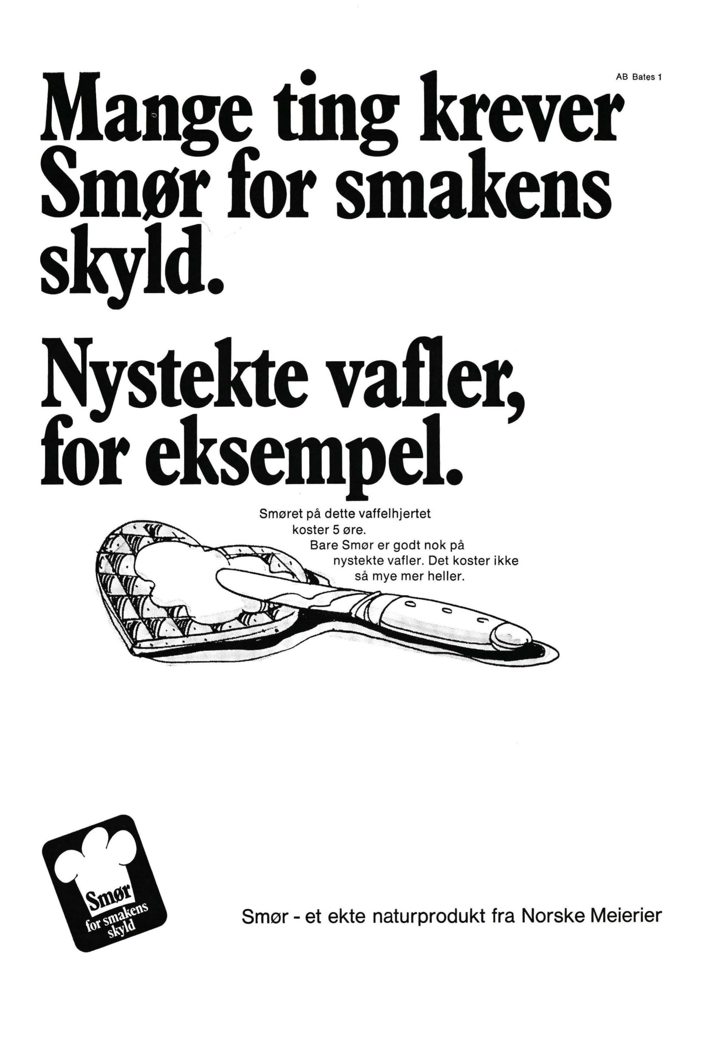 y · , , Bare Smør er godt nok på ,, : " . , ,, nystekte vafler. Det koster ikke '·· · , så mye mer heller.