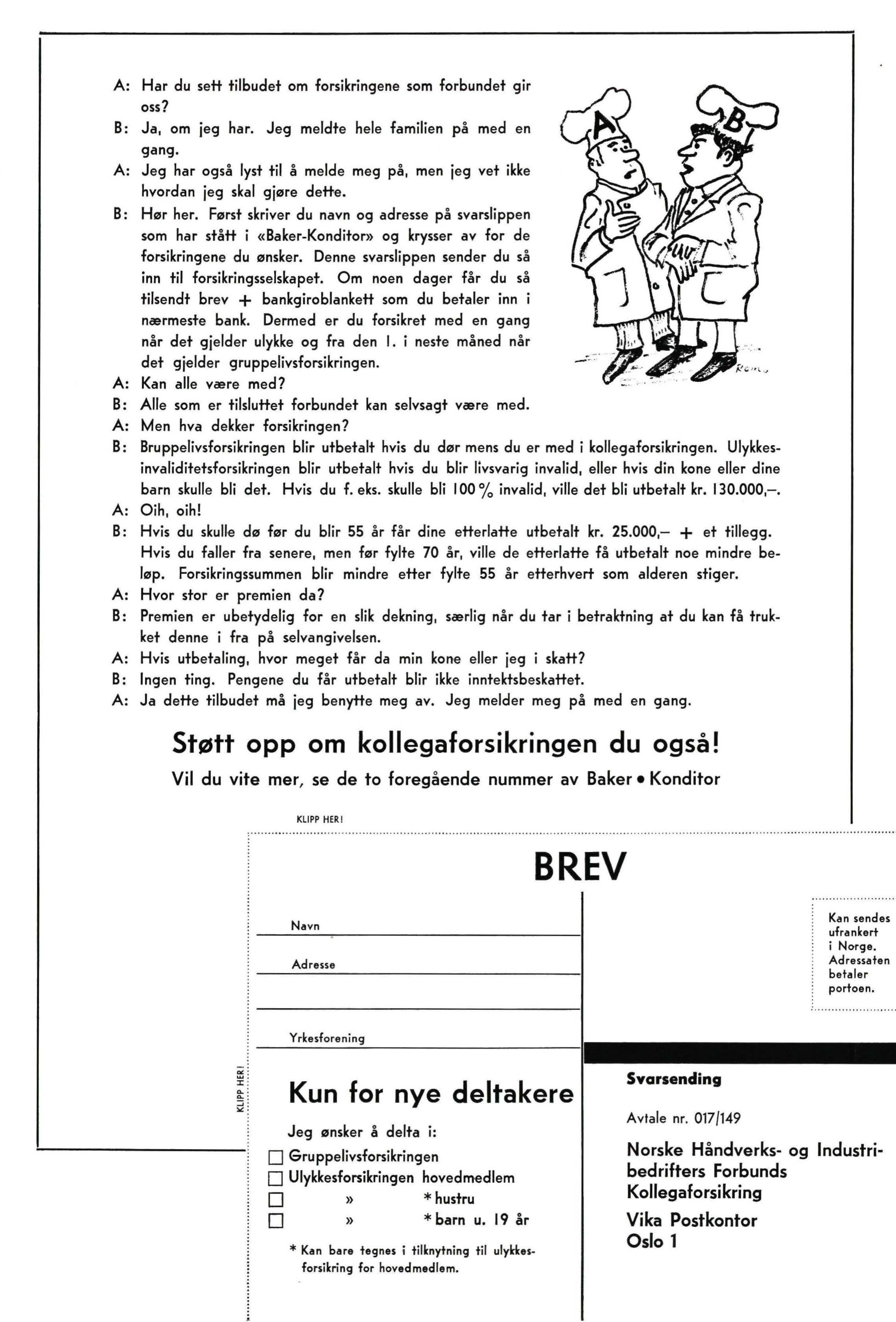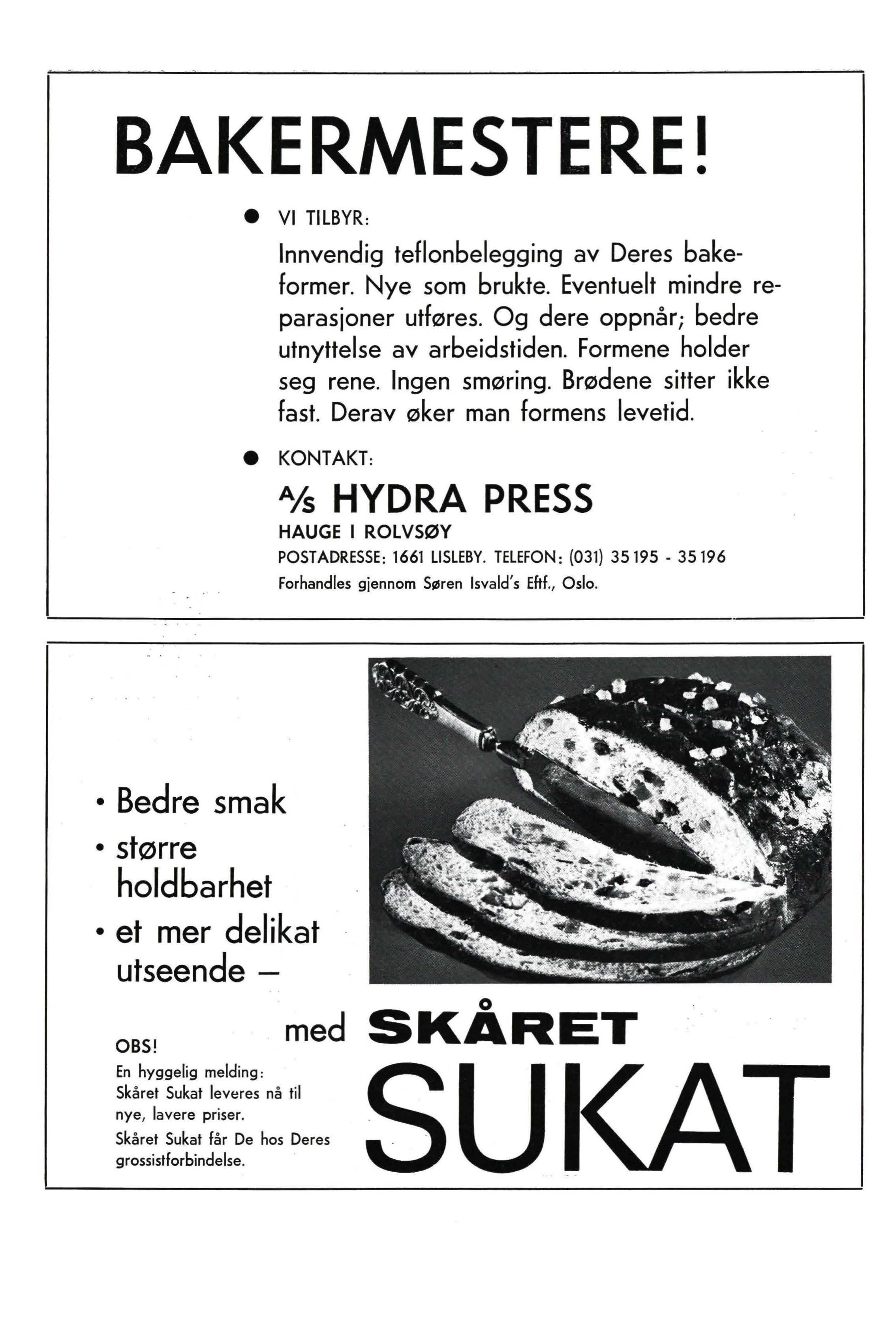 Før krigen var vårt fag et anerkjent og attraktivt yrke som ungdommen gjerne søkte til. I dag er forholdene dessverre helt annerledes,• Betingelsene innen yrket er nu slik at altfor få av de unge føler trang til å befatte seg med våre sysler. Gjennomsnittsalderen i baker- og konditorfaget er i dag så høy at vi om ca. IO år vil stå igjen med svært liten faglig arbeidskraft i bedriftene. Skal denne situasjon endres må det en radikal omlegning til. Forholdene i yrkene våre må igjen komme på høyde, og gjøres tiltrekkende for interessert ungdom. En yngre bakermester i Trondheim har i siste nummer av «Baker-Konditor» en tankevekkende artikkel om forholdene innen yrket. En artikkel som fortjener en inngående analyse av fagets ansvarlige organer.