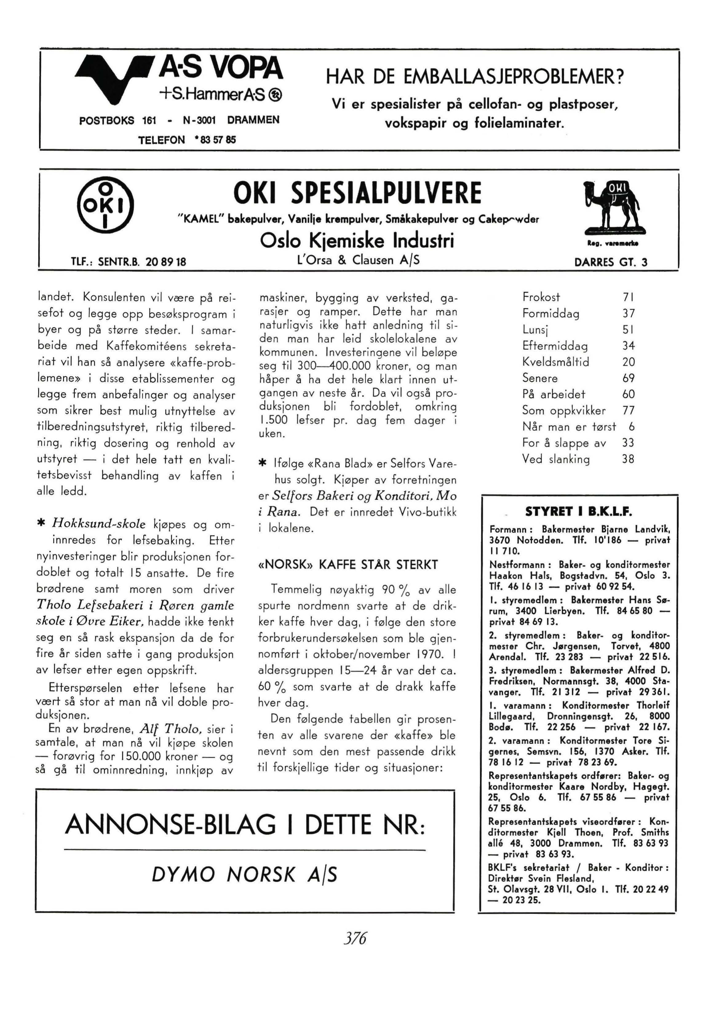 Denne omslagsside er stillet til disposisjon for N .C.l. av Norsk Mølleforening ved Bjølsen A/S, Aktieselskabet Christiansands Møller , Fritzøe Møller, A/ S H æggernæs Valsemølle, Pe ter Larsen & Co A/ S, Lysaker Mølle 1/ S , Moss Aktiemøller, I. C. Piene & S øn A/ S, Skiens Aktiemølle, ~•'1t'>elskapet lou A/S Vaksdal Mølle -