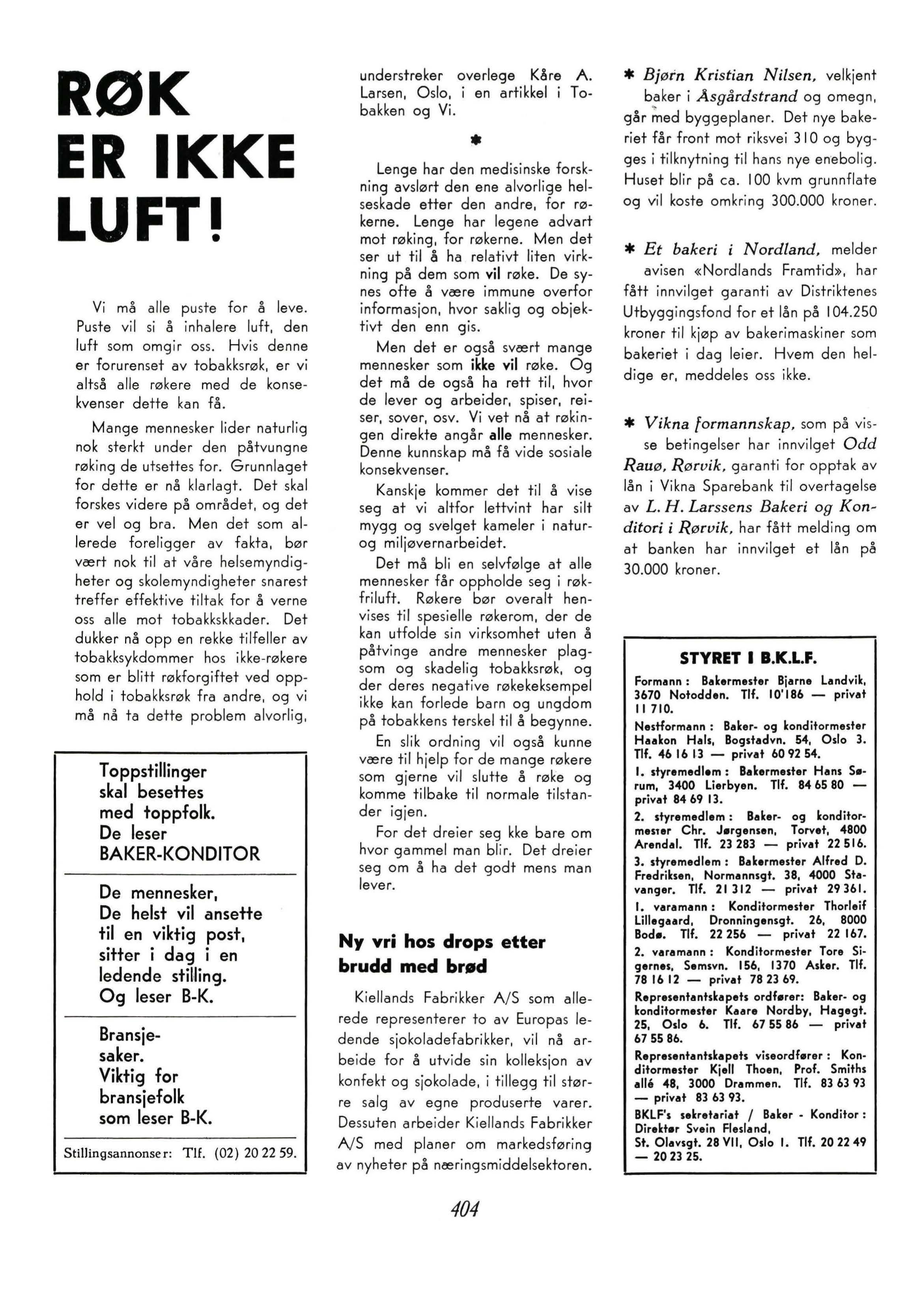 Fra dagbladet «Fremover» har «Baker-Konditor» sakset følgende: «Studiosalen i Folkets Hus var fullsatt til formiddagska[ fen som baker- og konditormestrene i Narvik og Ankenes lørdag spanderte på byens husmødre. Hensikten med arrangementet var å komme på tale[ ot med husmødrene og gi dem en orientering om hva bakerne har å by sine kunder.