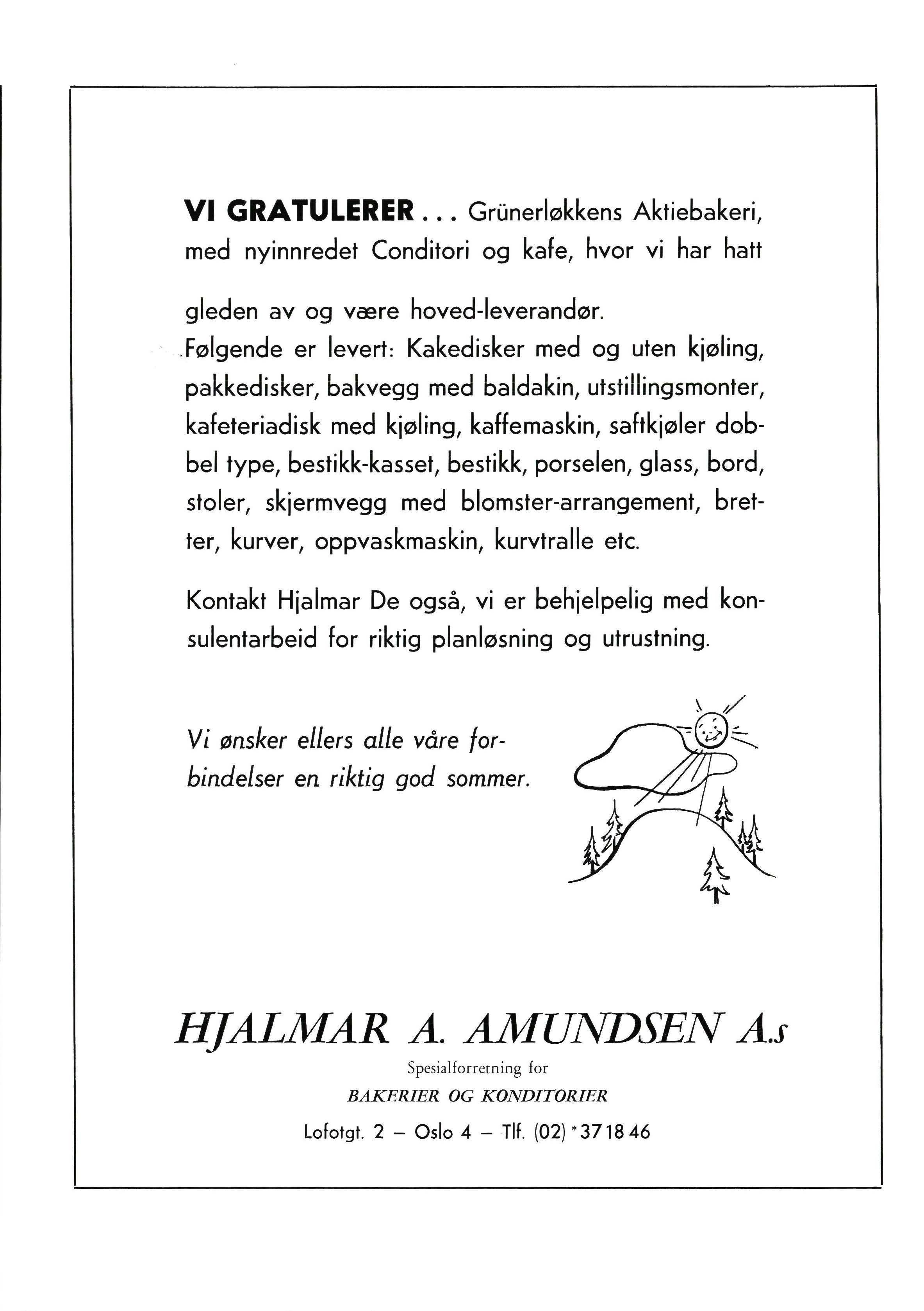 GRATULERER ... Grunerløkkens Aktiebakeri, med nyinnredet Conditori og kafe, hvor vi har hatt gleden av og være hoved-leverandør.