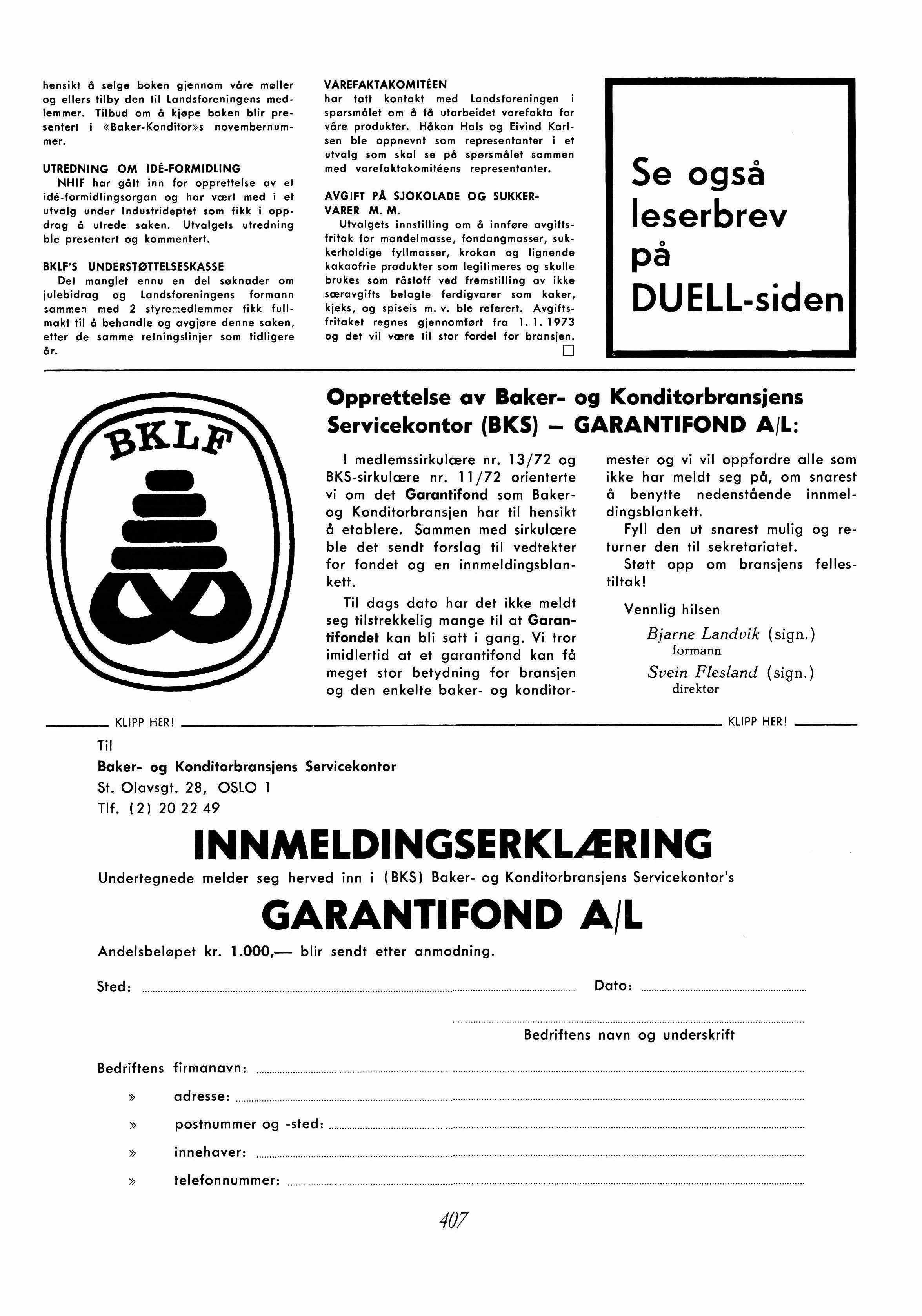 404 For full fart inn i 1973 405 Opprettelse av Garantif ond 407 Kurs for v idereutdann else 411 50 års ri vende utvikling hos H P. Gudesens Sønner i B orge. 412 Jubileum og medaljedryss h os P R Liltvedt i Ar e ndal 412 NAF har ordet 414