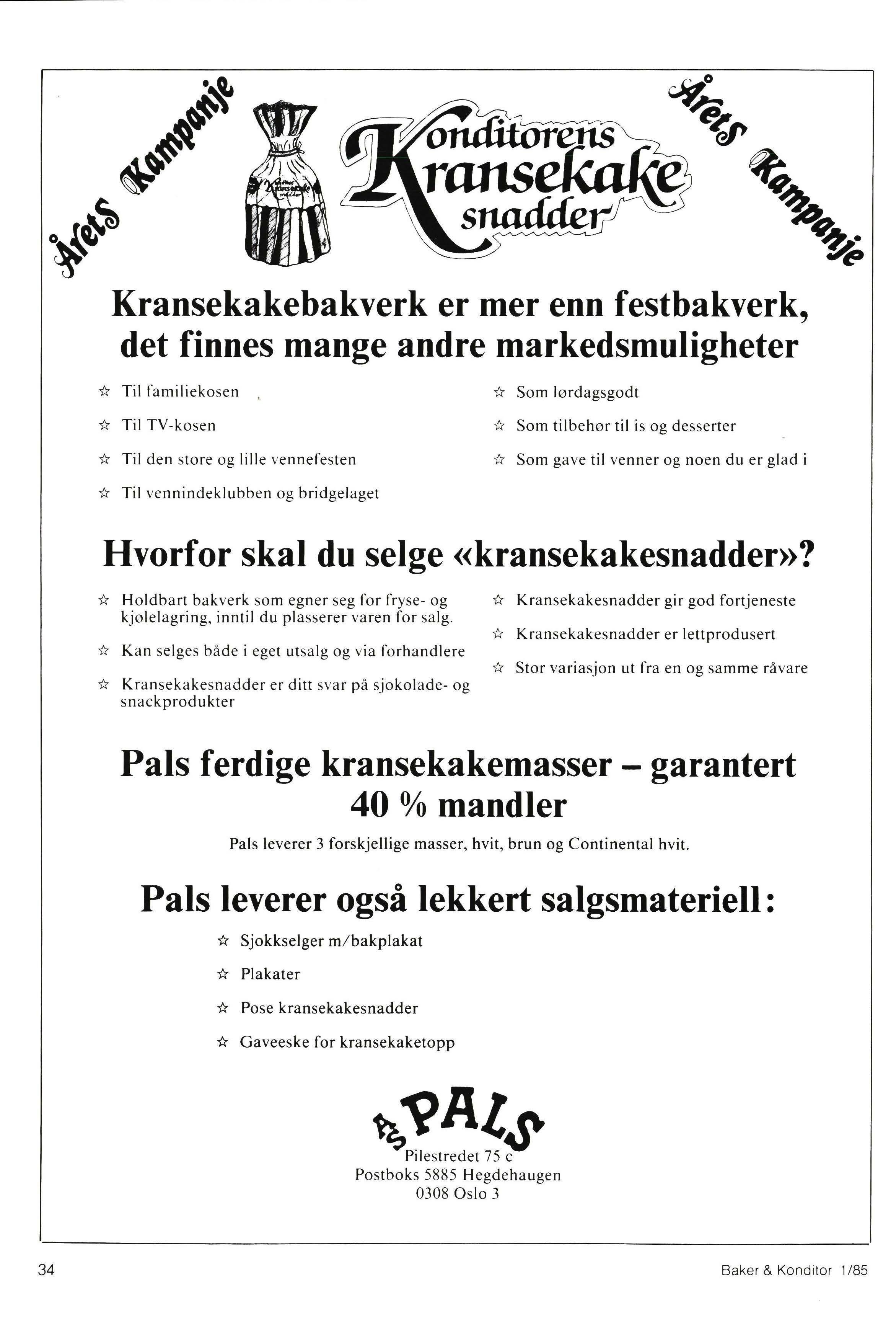 Kransekakenyheter fra konditorene. s. 12