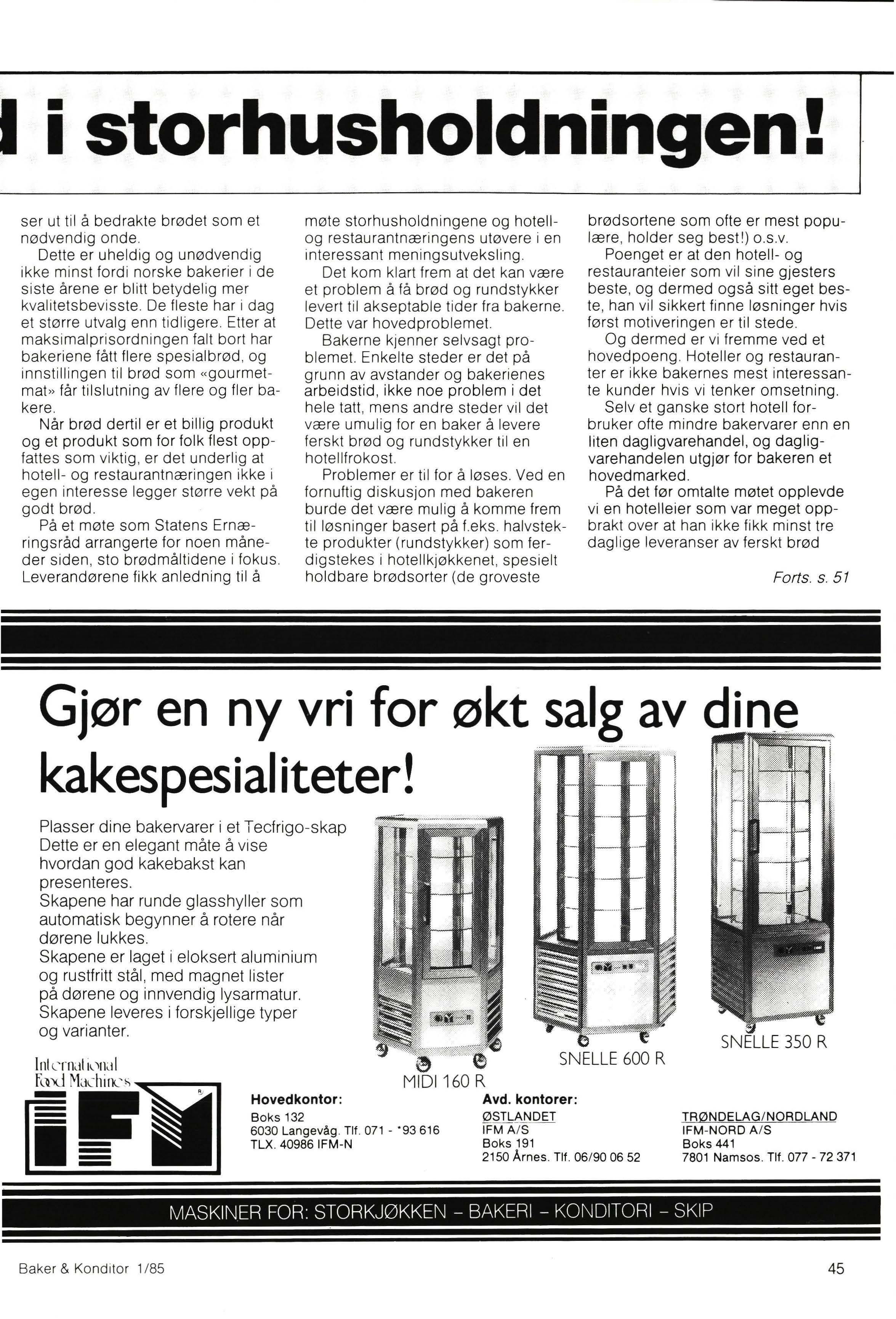 Kjeder er på full fart inn i salget av spesielt de nye baker- og konditorprodukter. Små salgssteder , effektivt utstyr med avbakingsovn (frosne halvbakte produkter) som selges direkte ut over salgsdisken en meter fra produks1onsstedet.