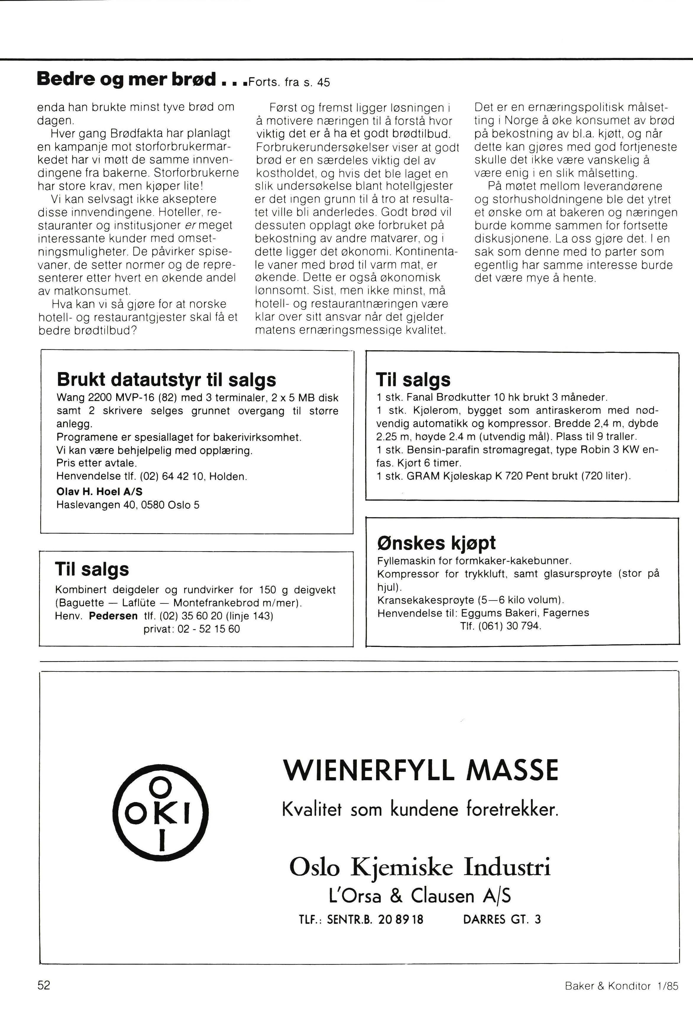 Adresse og tlf. nr.: Brødfakta , Hoffsbakken 1, 0277 Oslo 2, tlf. (02) 50 40 80.